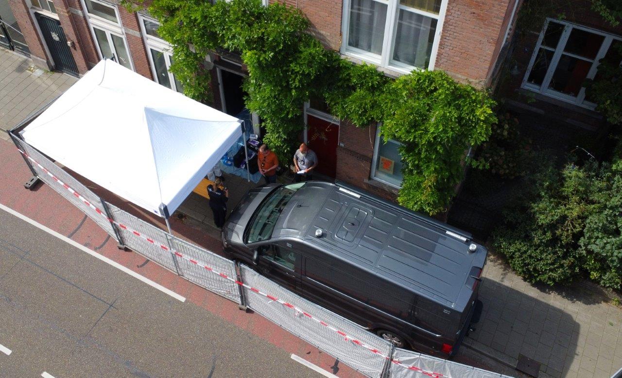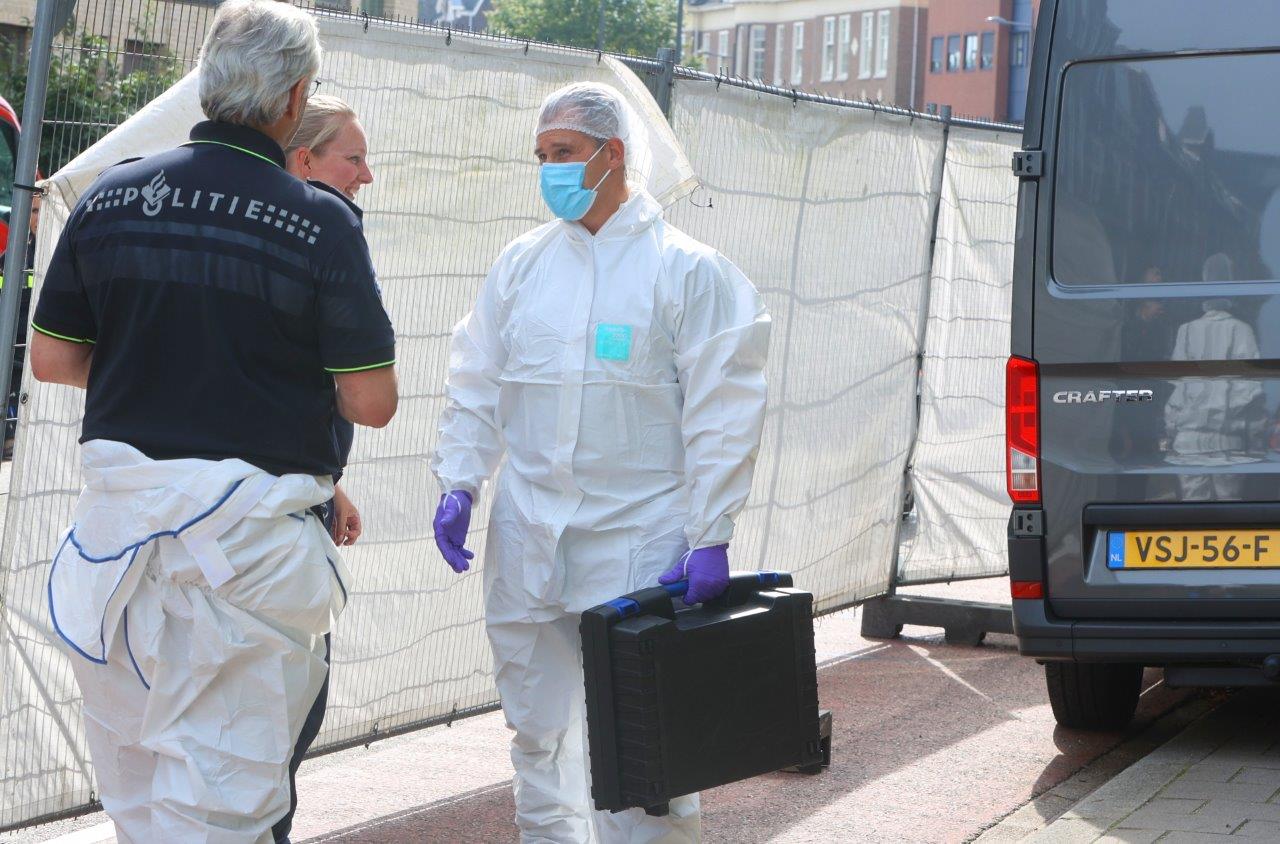 De forensische recherche is zich aan het voorbereiden om in de woning sporenonderzoek te doen. Het onderzoek zal nog een groot deel van de dag duren.