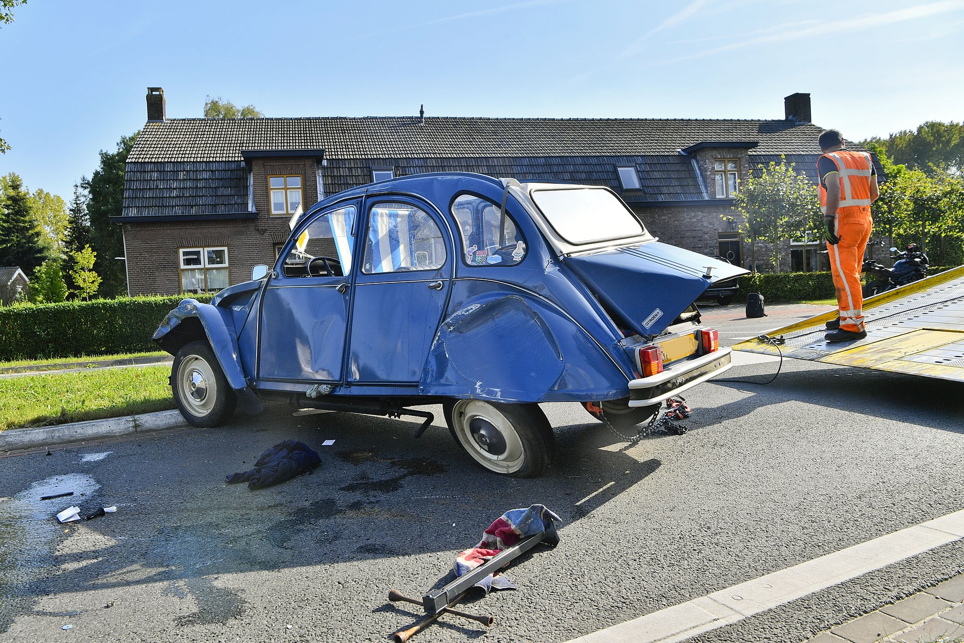 Oude Citroën Eend uit 1980 total loss bij ongeval