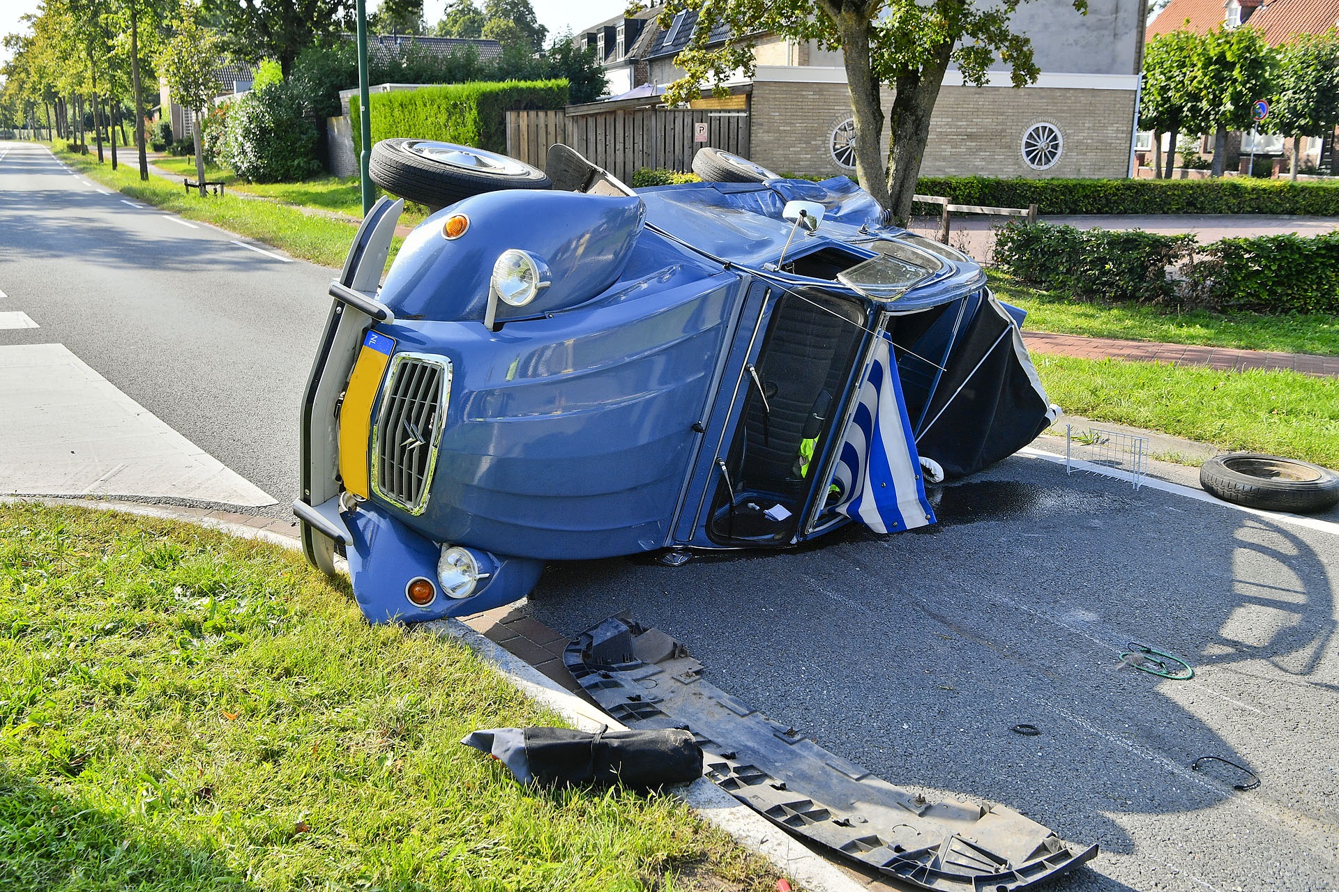 Oude Citroën Eend uit 1980 total loss bij ongeval