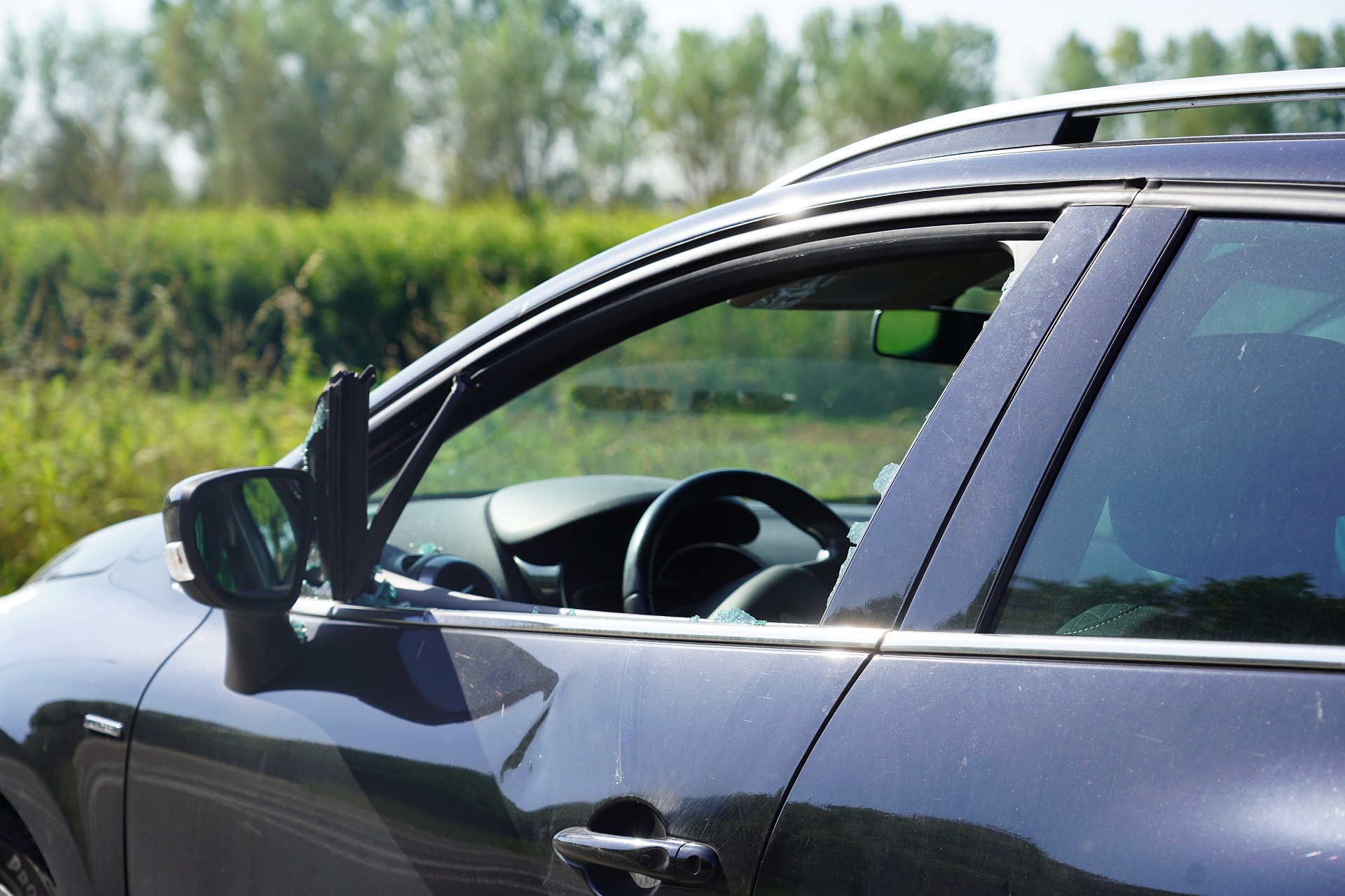 De motorrijder kwam ten val en raakte gewond. Bij de aanrijding sneuvelde ook de ruit van de personenauto.