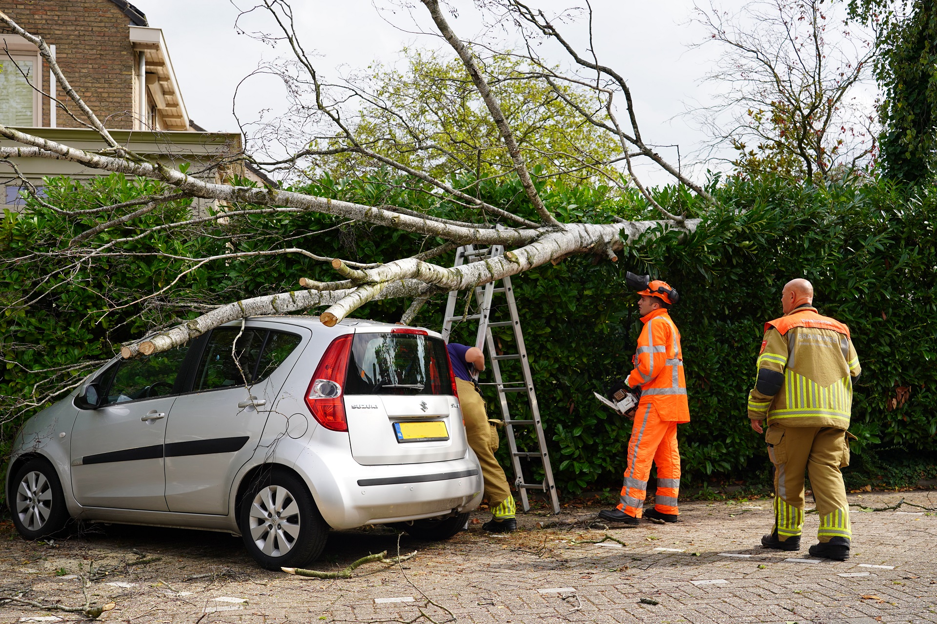 De brandweer werd met een hoogwerker en tankautospuit opgeroepen om de tak van de auto te halen. Een brandweer man heeft de tak in stukken gezaagd waarna hij van de auto gehaald kon worden. De auto raakte beschadigd.
