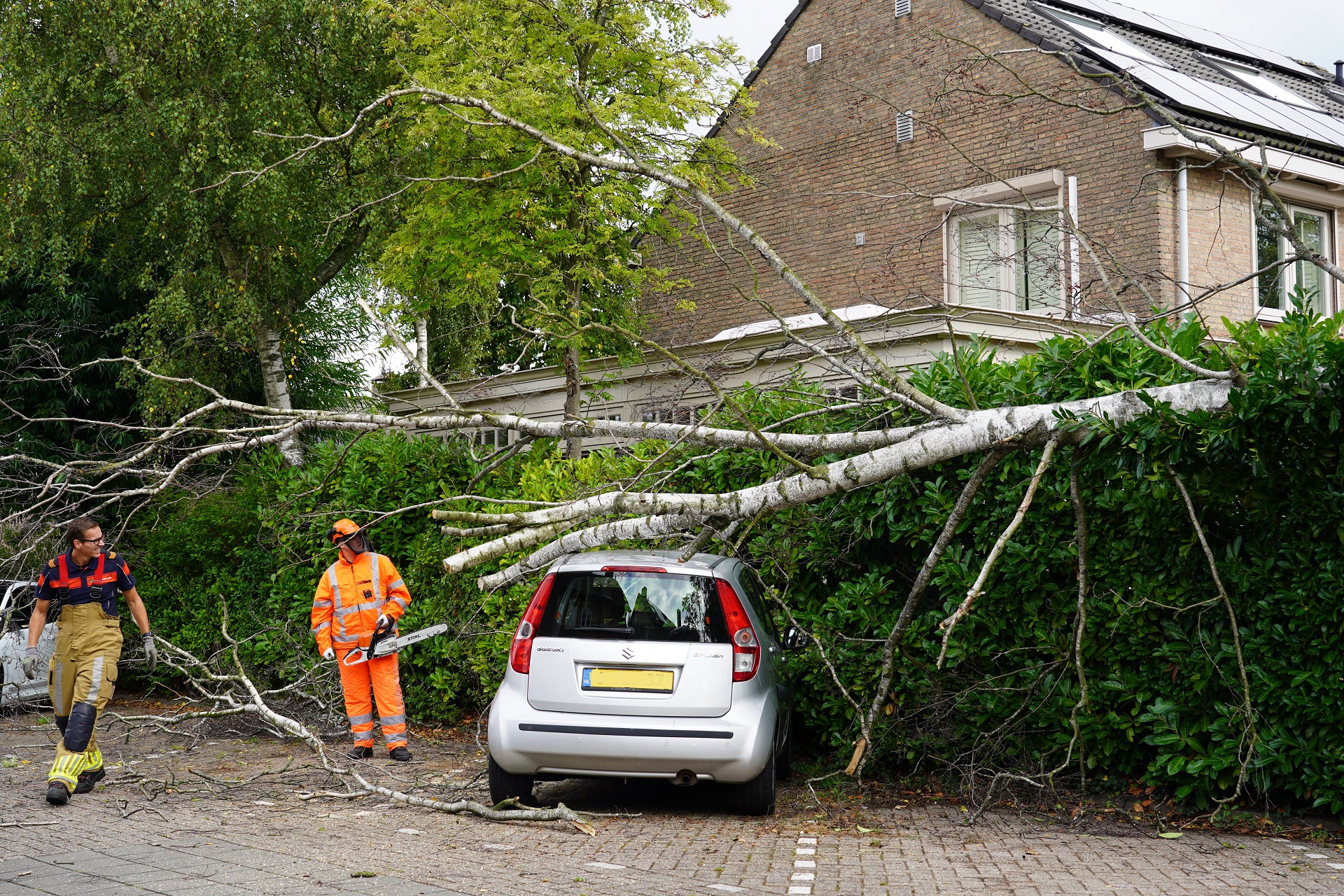 De brandweer werd met een hoogwerker en tankautospuit opgeroepen om de tak van de auto te halen. Een brandweer man heeft de tak in stukken gezaagd waarna hij van de auto gehaald kon worden. De auto raakte beschadigd.