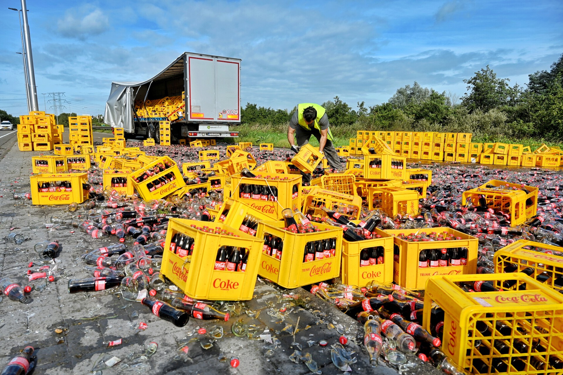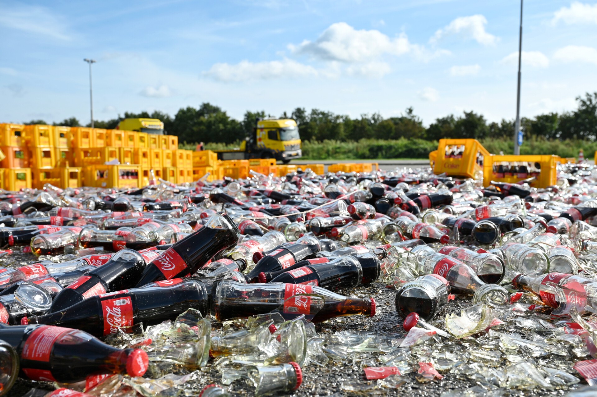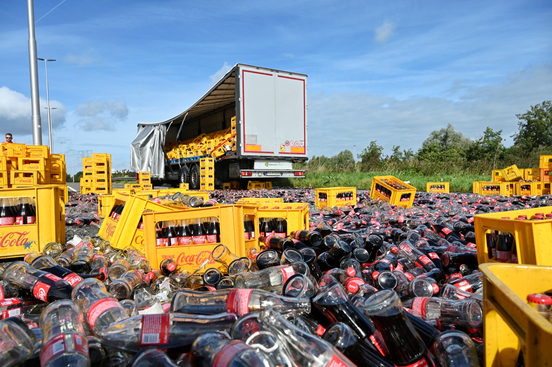 Tienduizenden flesjes cola veroorzaken ravage op de weg in Tilburg