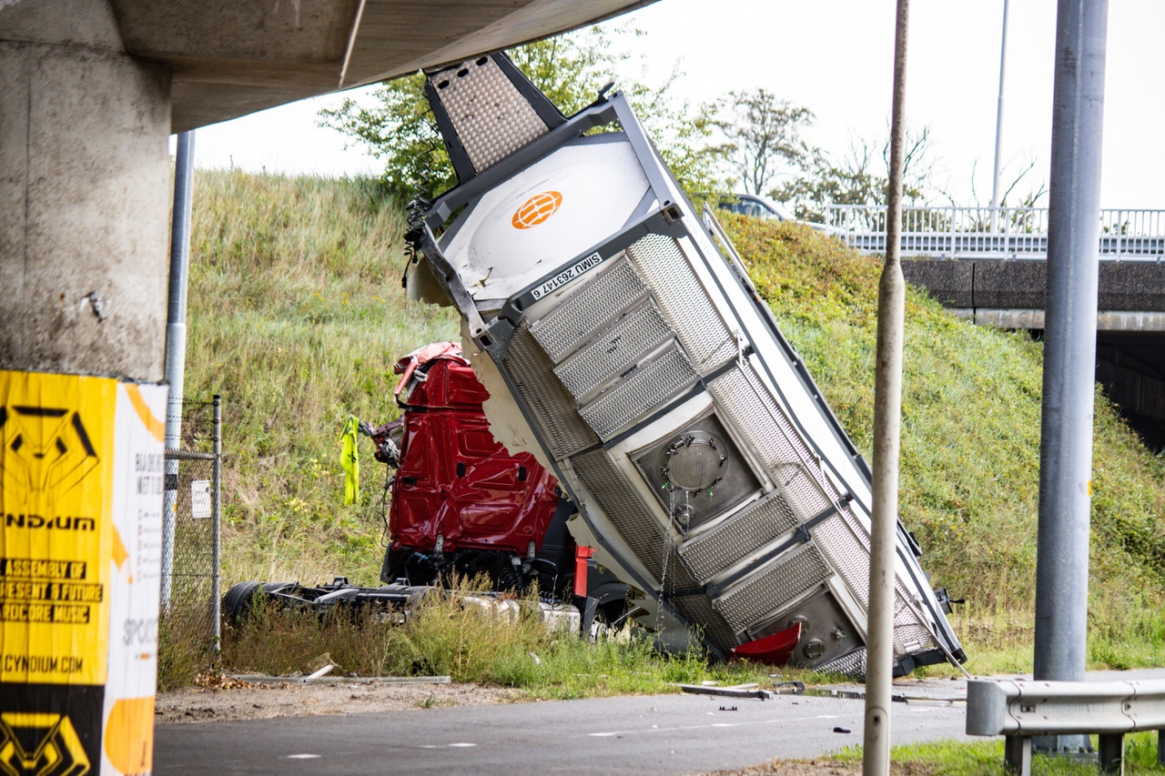 De chauffeur ramde rond half elf de vangrail waarna de vrachtwagencombinatie van het viaduct viel. De chauffeur raakte hierbij gewond. De vrachtwagen is geladen met glucose. De Veiligheidsregio meldt dat de chauffeur door de brandweer uit zijn cabine is gehaald en met verwondingen naar het ziekenhuis vervoerd.