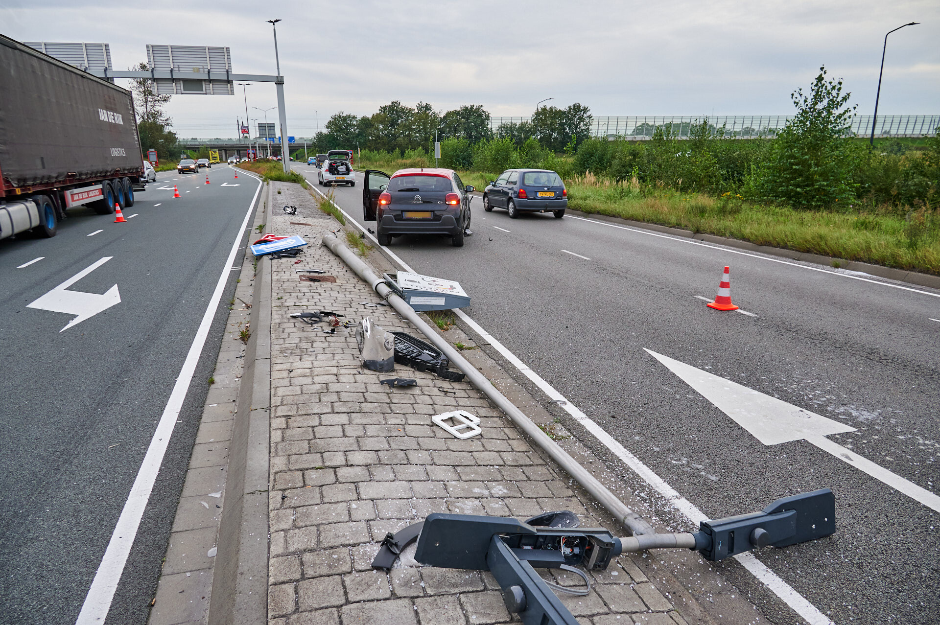 Een berger kwam om de auto af te slepen. De paal zal later door de gemeente hersteld worden.