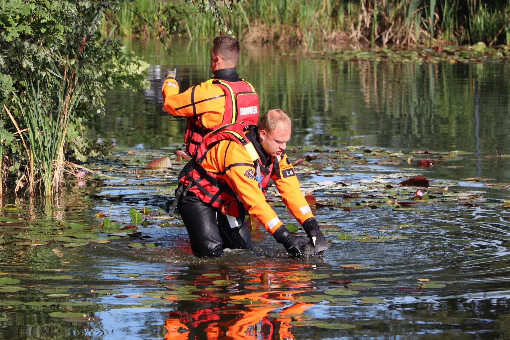 Brandweer bevrijdt meerkoet die in visdraad vast zit