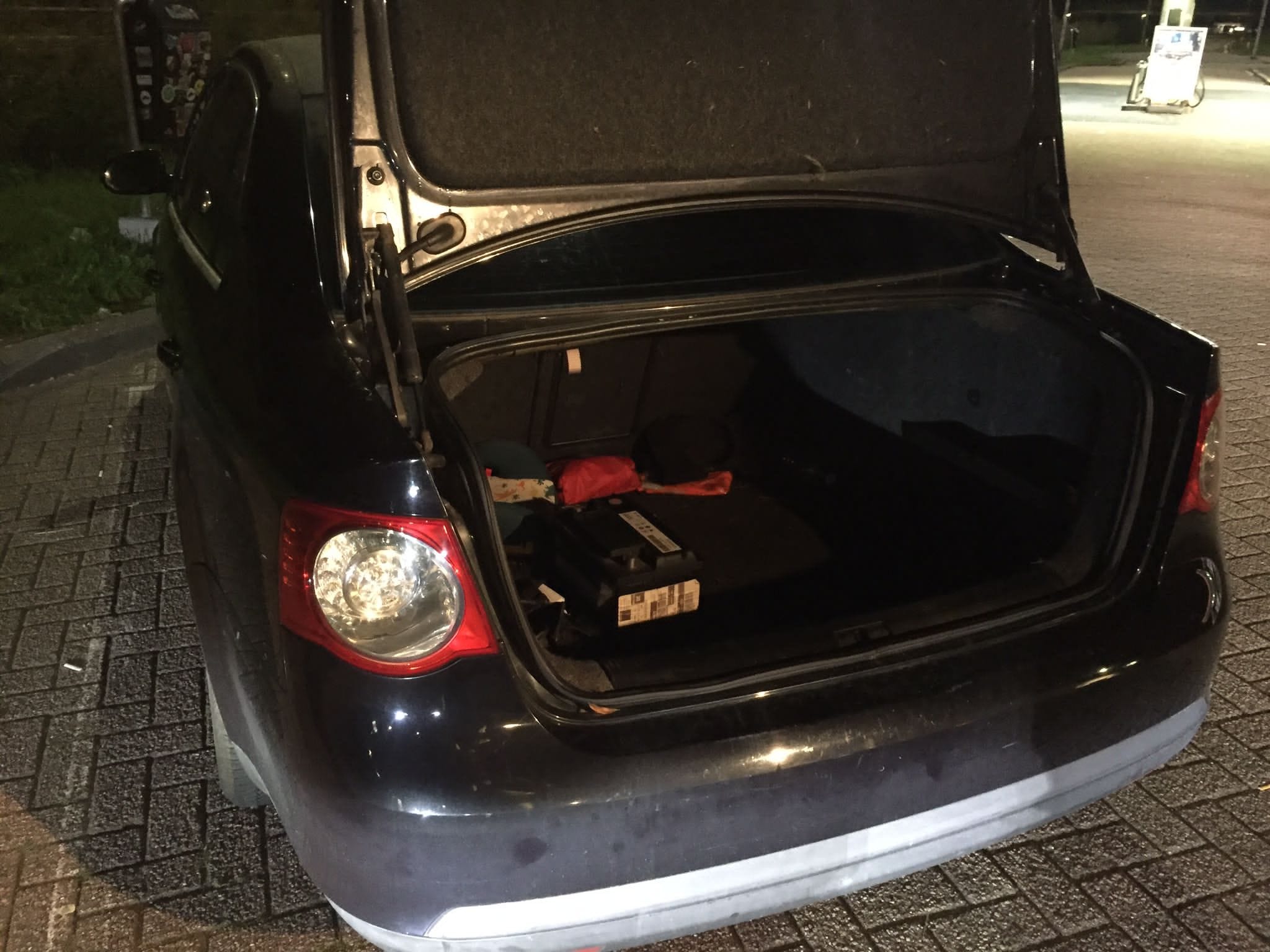 Hoe en waarom het vrouwtjes schaap in de kofferbak van de auto met Duits kenteken is beland onderzoekt de politie. Het schaap is nu veilig.