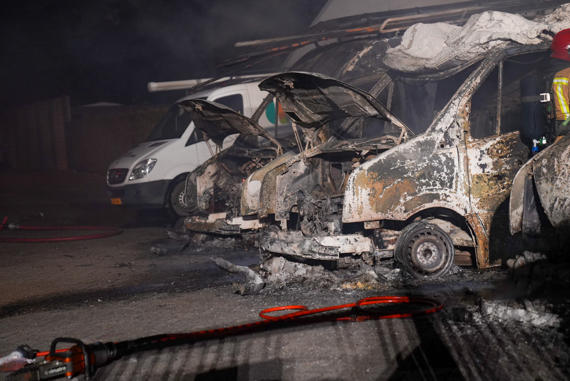 Vier bestelbussen uitgebrand, politie onderzoekt mogelijke brandstichting