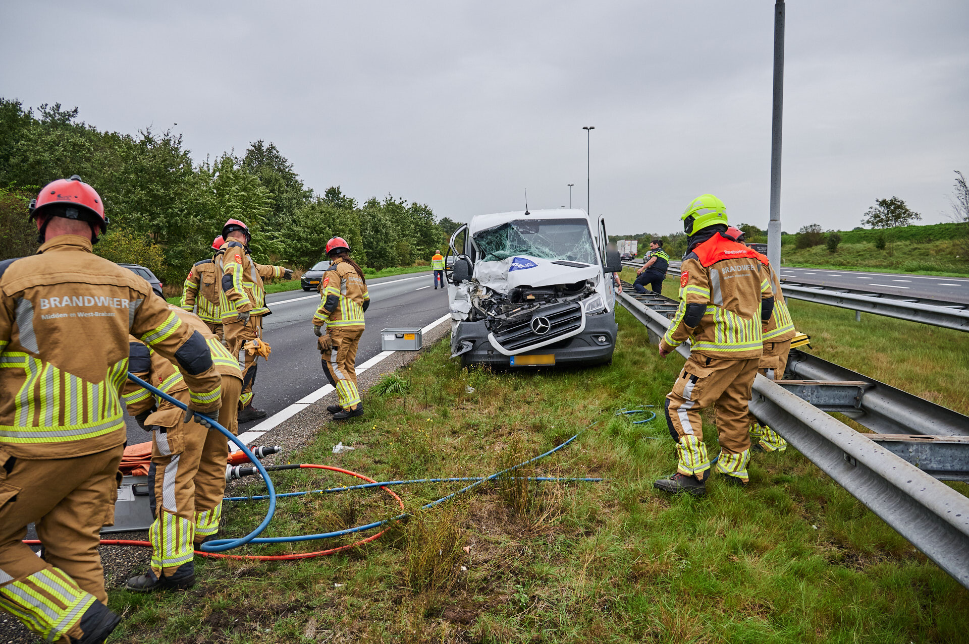 Een berger heeft de bestelbus getakeld en afgevoerd.Β De bakwagen kom zelf verder rijden. Door het ongeval ontstond er een lange file.