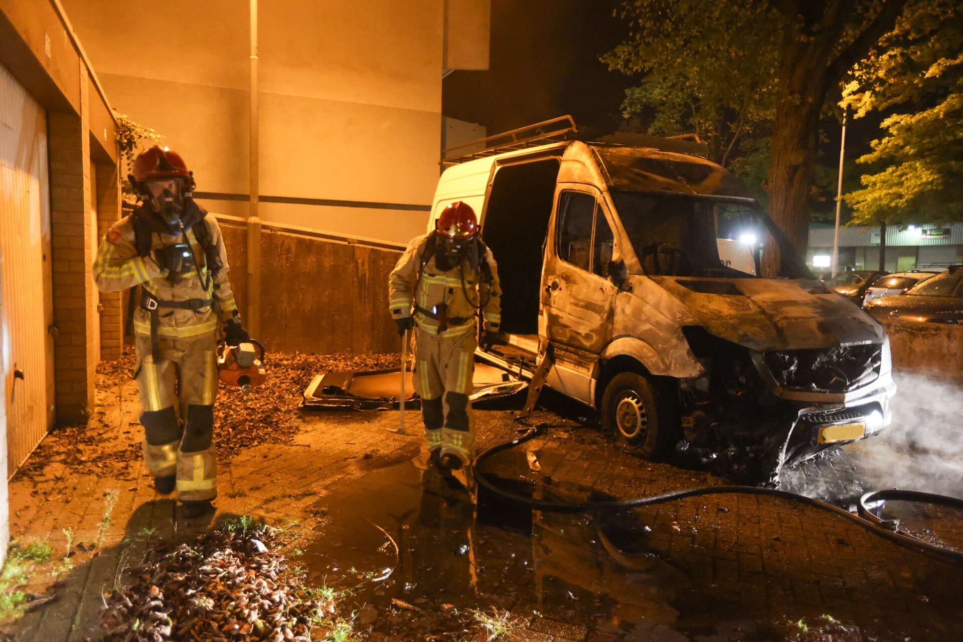 Bestelbus uitgebrand op parkeerplaats, sporen van brandstichting