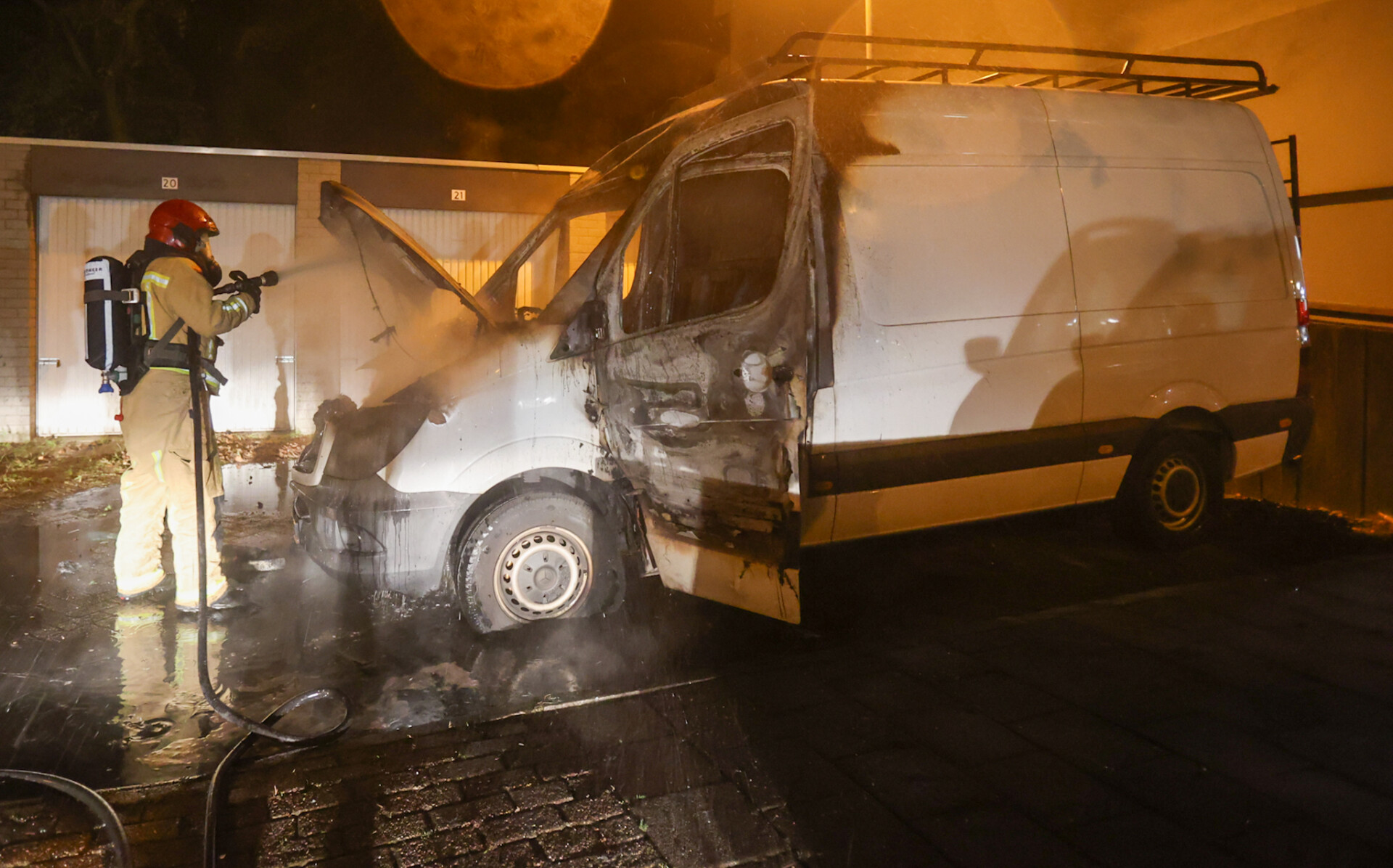 Bestelbus uitgebrand op parkeerplaats, sporen van brandstichting