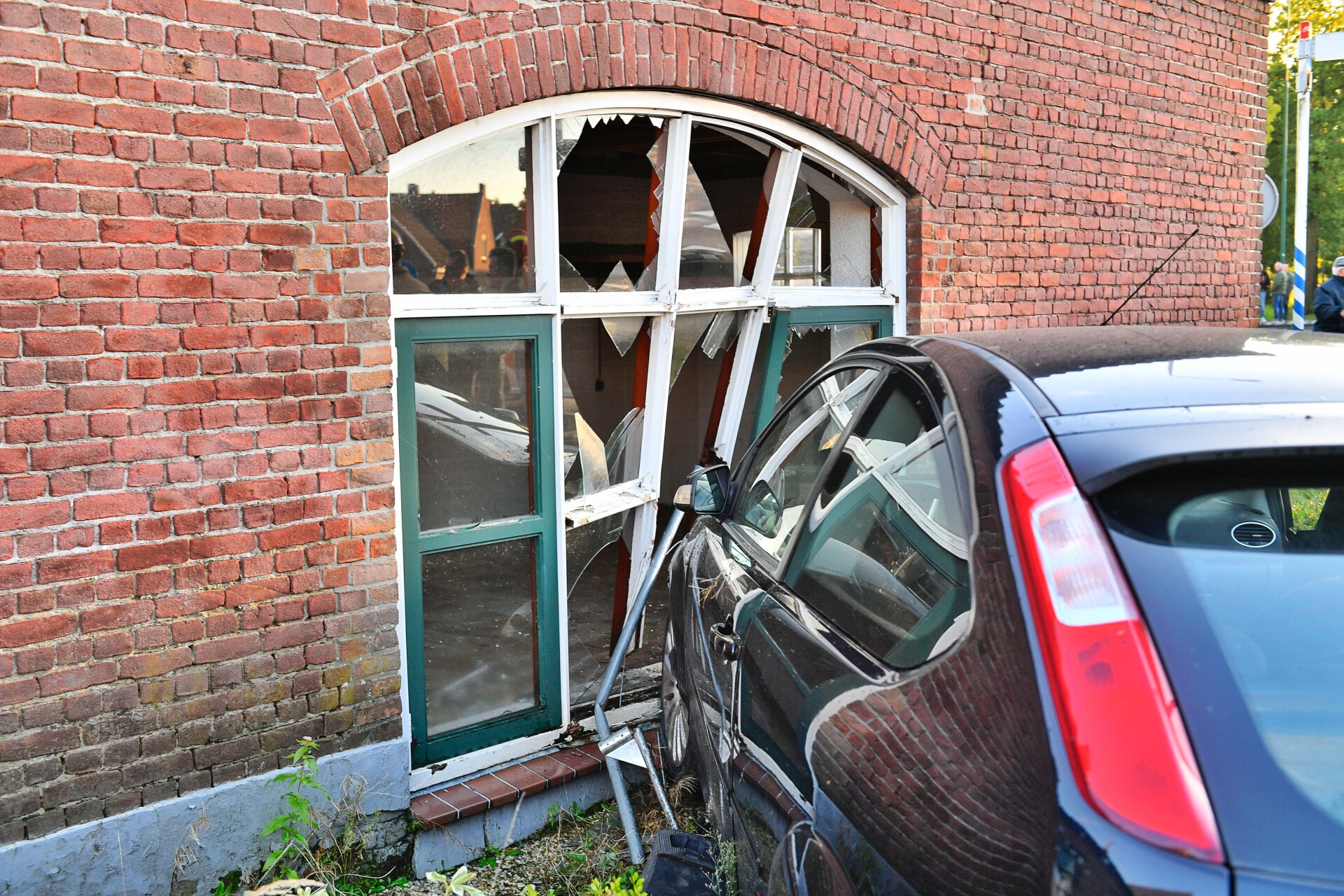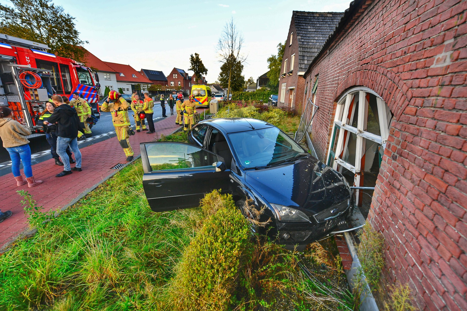 De vrouw slaagde er in zelfstandig uit haar voertuig te komen voordat ze in een ambulance werd onderzocht. Het incident vond plaats vlakbij de brandweerkazerne, waardoor hulp snel ter plaatse was. Hoe het ongeval kon gebeuren is niet bekend.