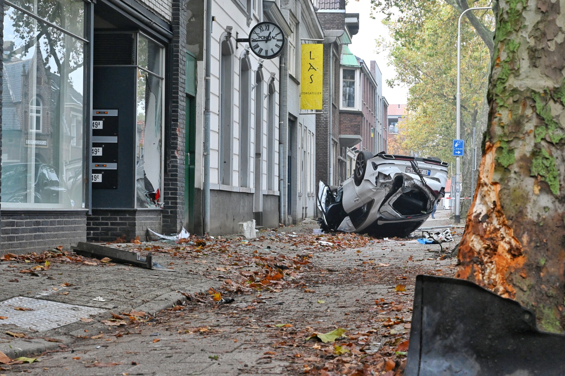 De auto reed op de Goirkestraat met zeer hoge snelheid over het fietspad, ramde een boom, gevel en container en vloog vervolgens over de kop. Door het ongeval ontstond een grote ravage.