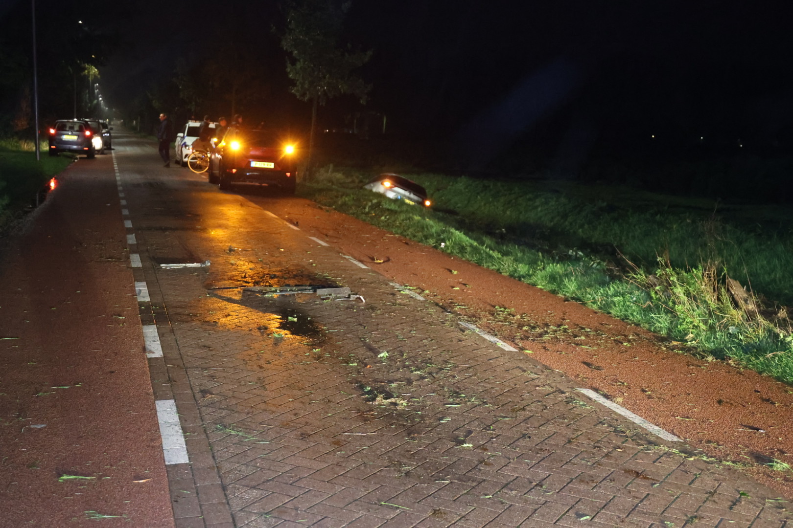 De politie heeft een onderzoek ingesteld naar de bestuurder, het is niet bekend of hij is aangetroffen. Een bergingsbedrijf heeft de auto uit de sloot gehaald en afgevoerd.
