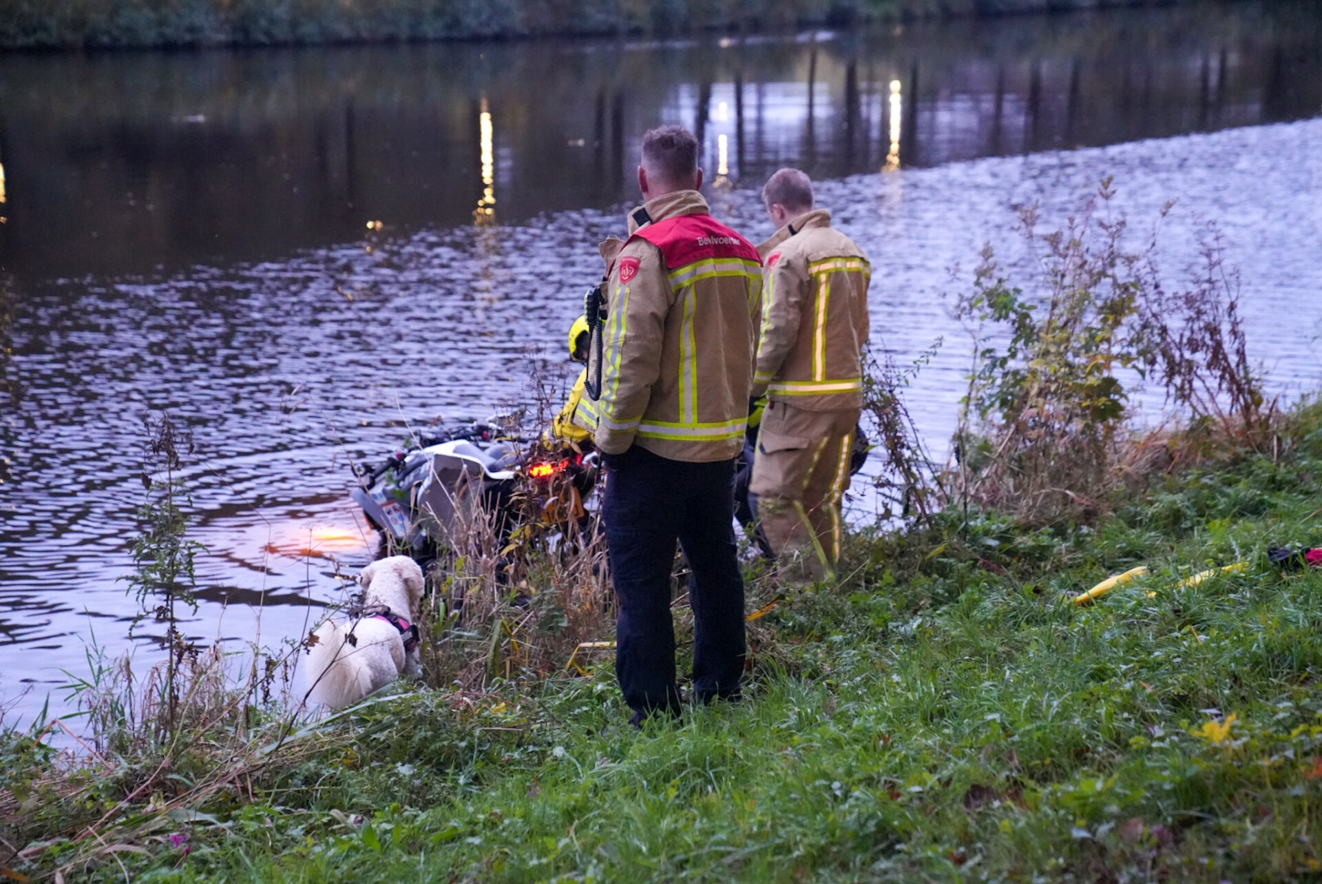 Het slot inclusief muuranker hing nog aan de motor. Een voorbijganger zag het voertuig in het water liggen en belde de hulpdiensten. Deze rukten met grote spoed uit omdat er mogelijk nog een persoon in het water zou liggen. Die is na een zoektocht niet aangetroffen.