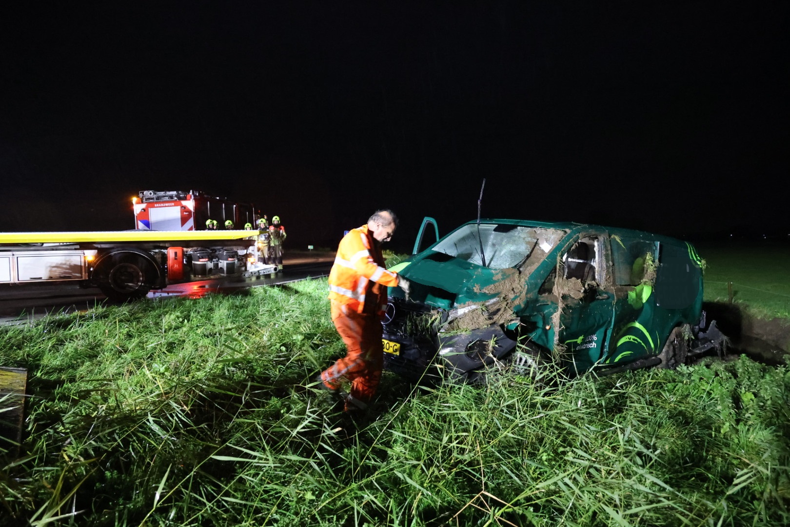 De chauffeur reed zaterdagavond rond 22:00 uur vanaf de Veerweg in Sprang-Capelle richting A59, zag de bocht over het hoofd en ging rechtdoor de sloot in. Net toen de politie ter plaatse kwam wist de chauffeur uit zijn voertuig te komen. Hij raakte wel gewond en werd met een ambulance naar het ziekenhuis vervoerd.