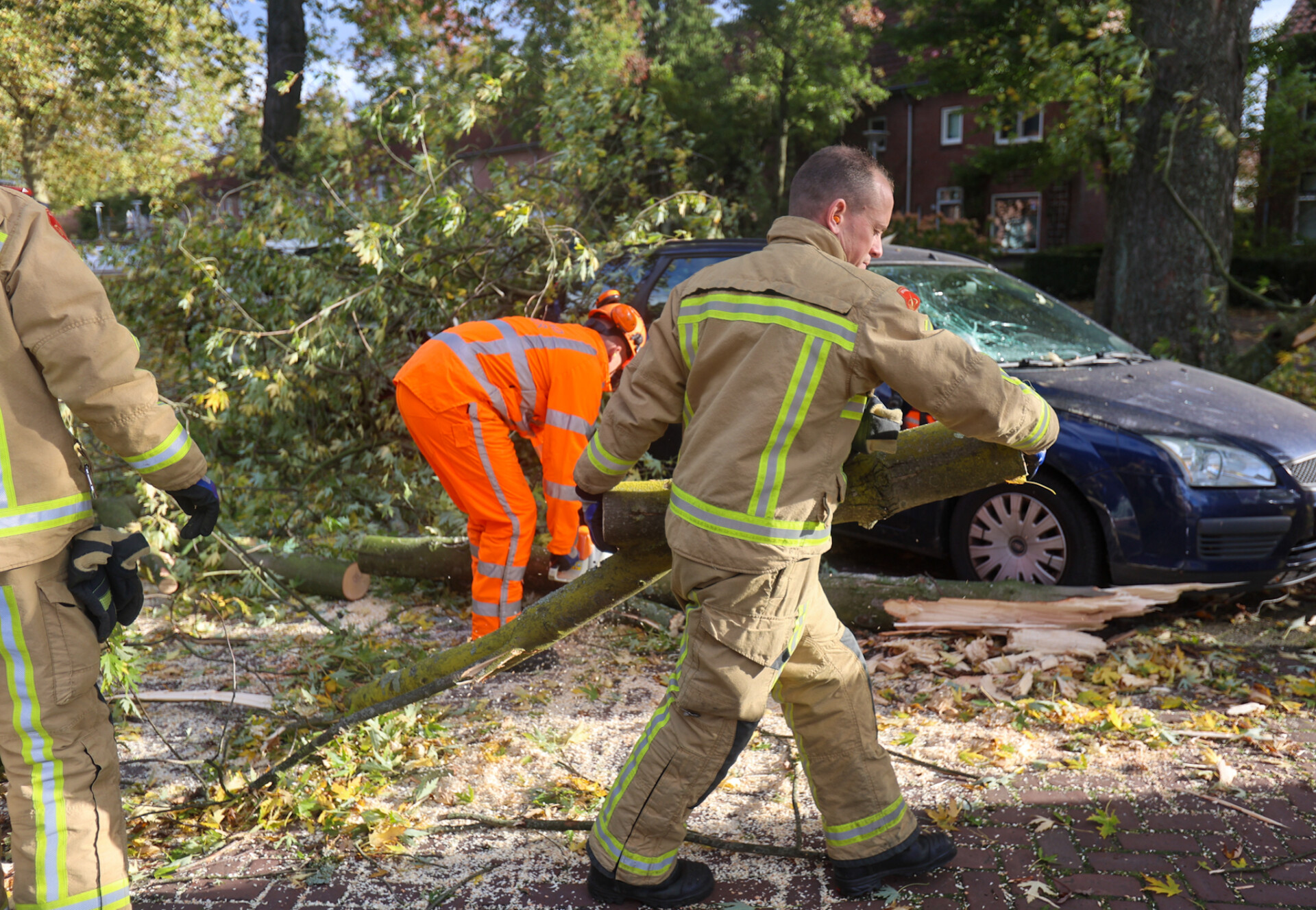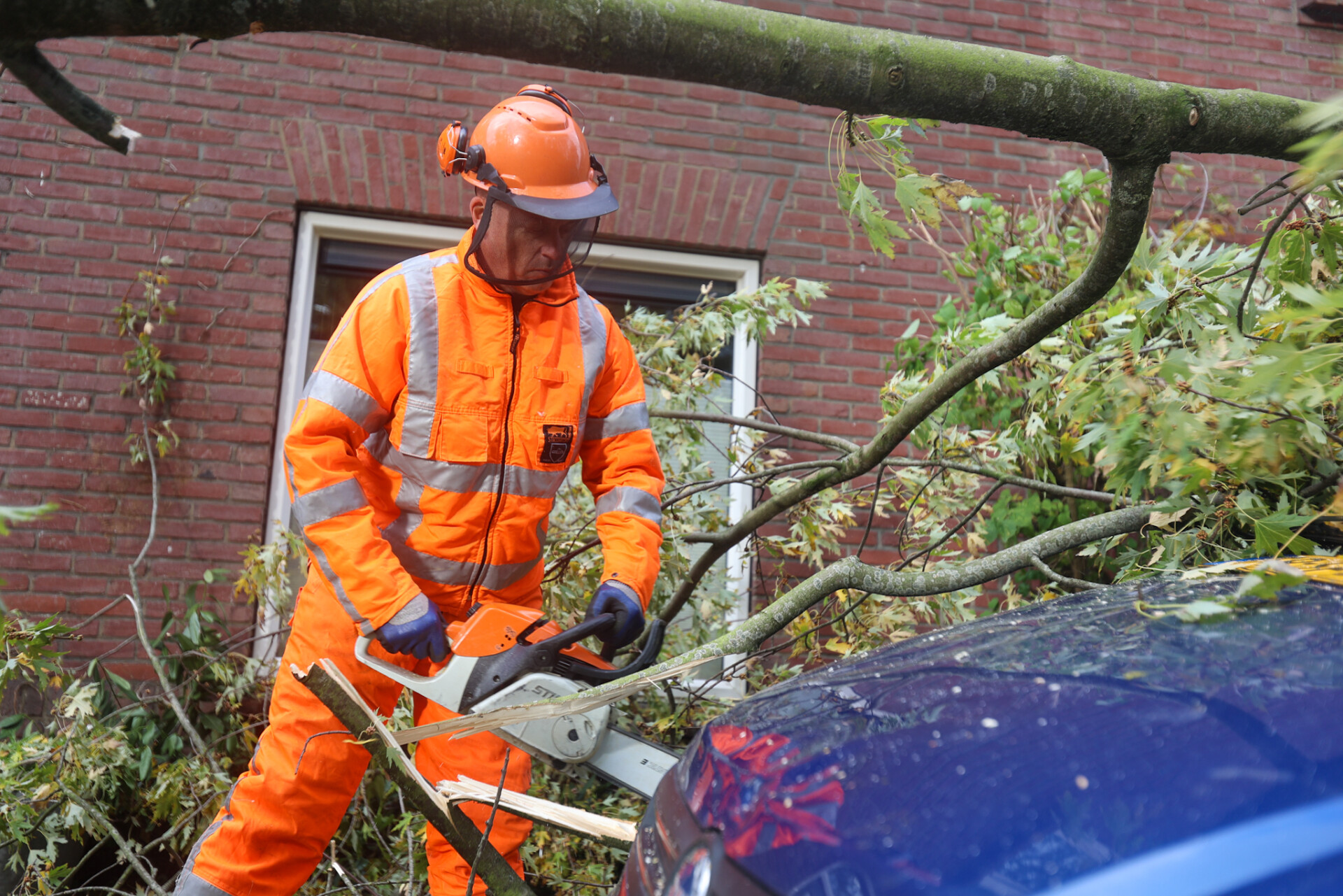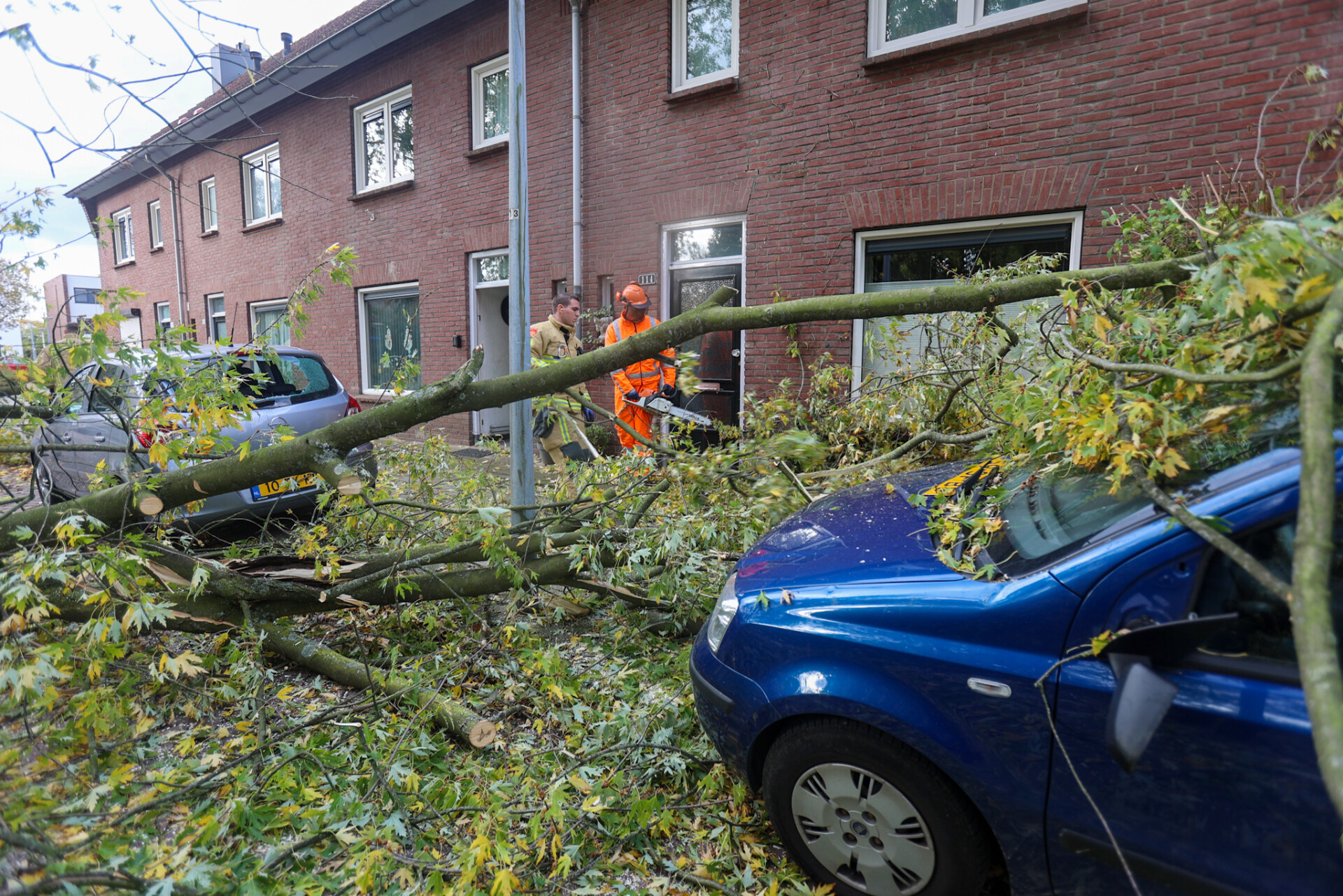 Rond 09:40 uur werd de brandweer gealarmeerd vanwege een incident waarbij een grote boom was omgewaaid en op vier geparkeerde auto’s terechtkwam. Alle auto’s liepen aanzienlijke schade op, waarbij twee auto’s ramen verloren. Bovendien raakte een lantaarnpaal zwaar beschadigd en werd deze volledig vernield.