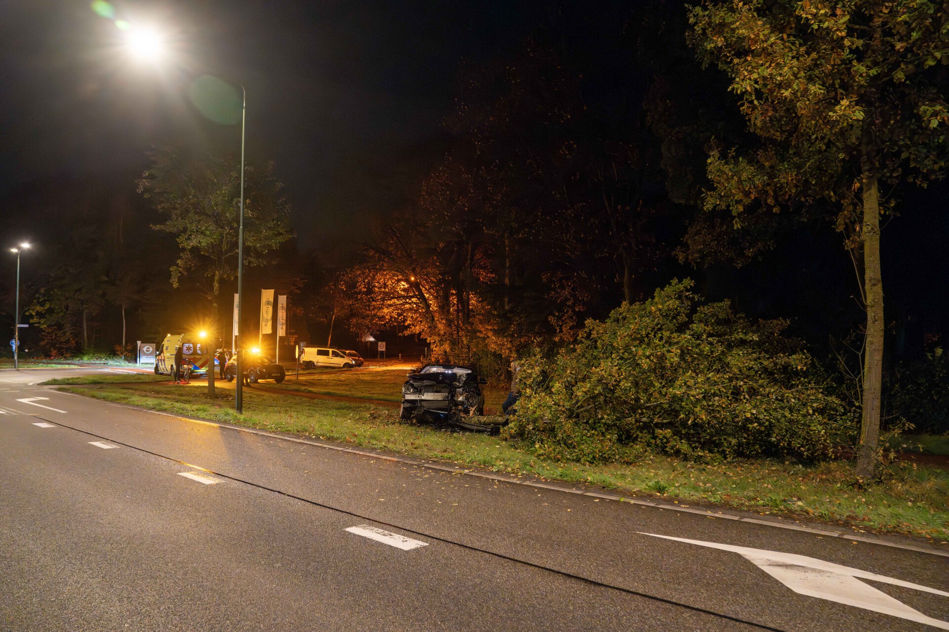 De auto lekte ook flink veel olie, de gemeente draagt zorg voor deze lekkage en ook voor de omgereden boom. De politie doet verder onderzoek naar de rijstlij van de bestuurder.