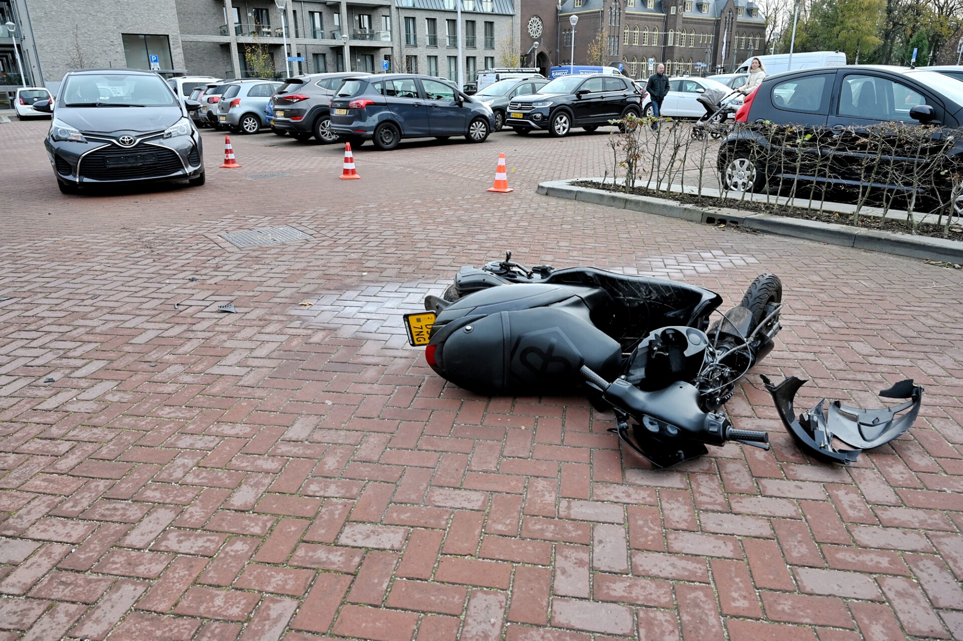 Op de parkeerplaats bij de Aldi ging het mis, de auto en scooter raakten elkaar. De scooterrijder raakte gewond en is afgevoerd naar het ziekenhuis. De schade aan de auto en de scooter is groot. De scooter lekt flink benzine. Politie en handhaving kwamen ter plaatse.