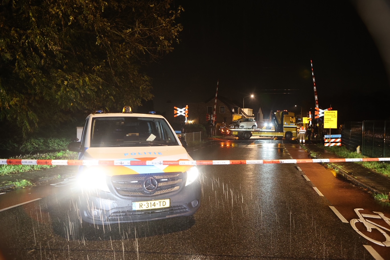 Auto geschept door trein op spoorwegovergang, geen gewonden