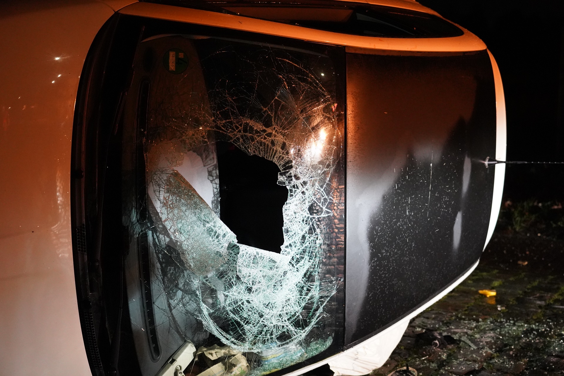 Een bergingsbedrijf heeft de auto weer op z’n wielen gezet en afgevoerd.