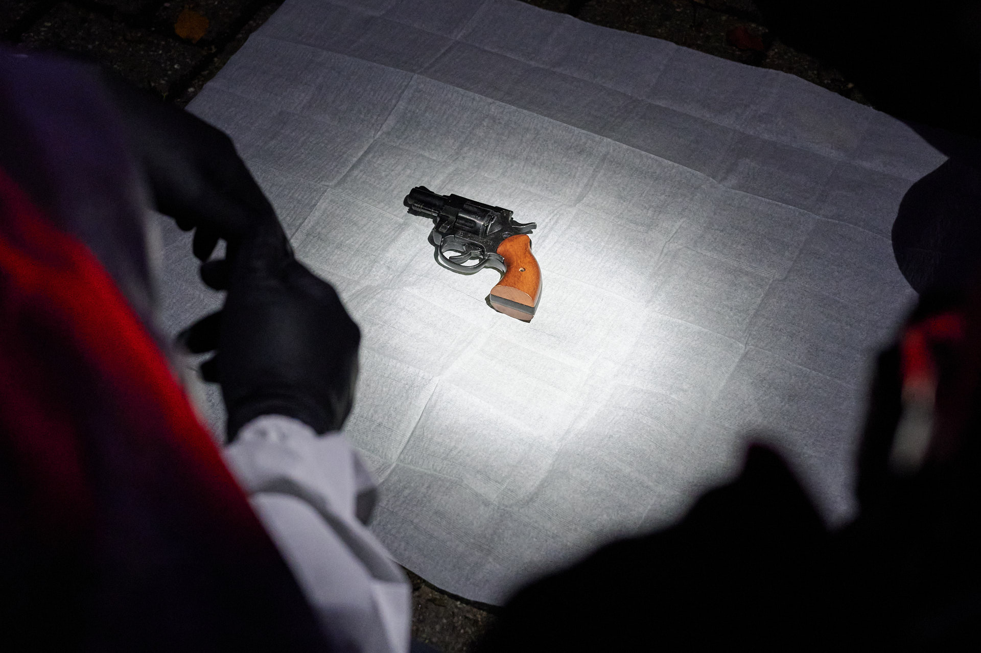 Bij de vluchtauto trof de politie een vuurwapen aan. Er raakte niemand gewond.