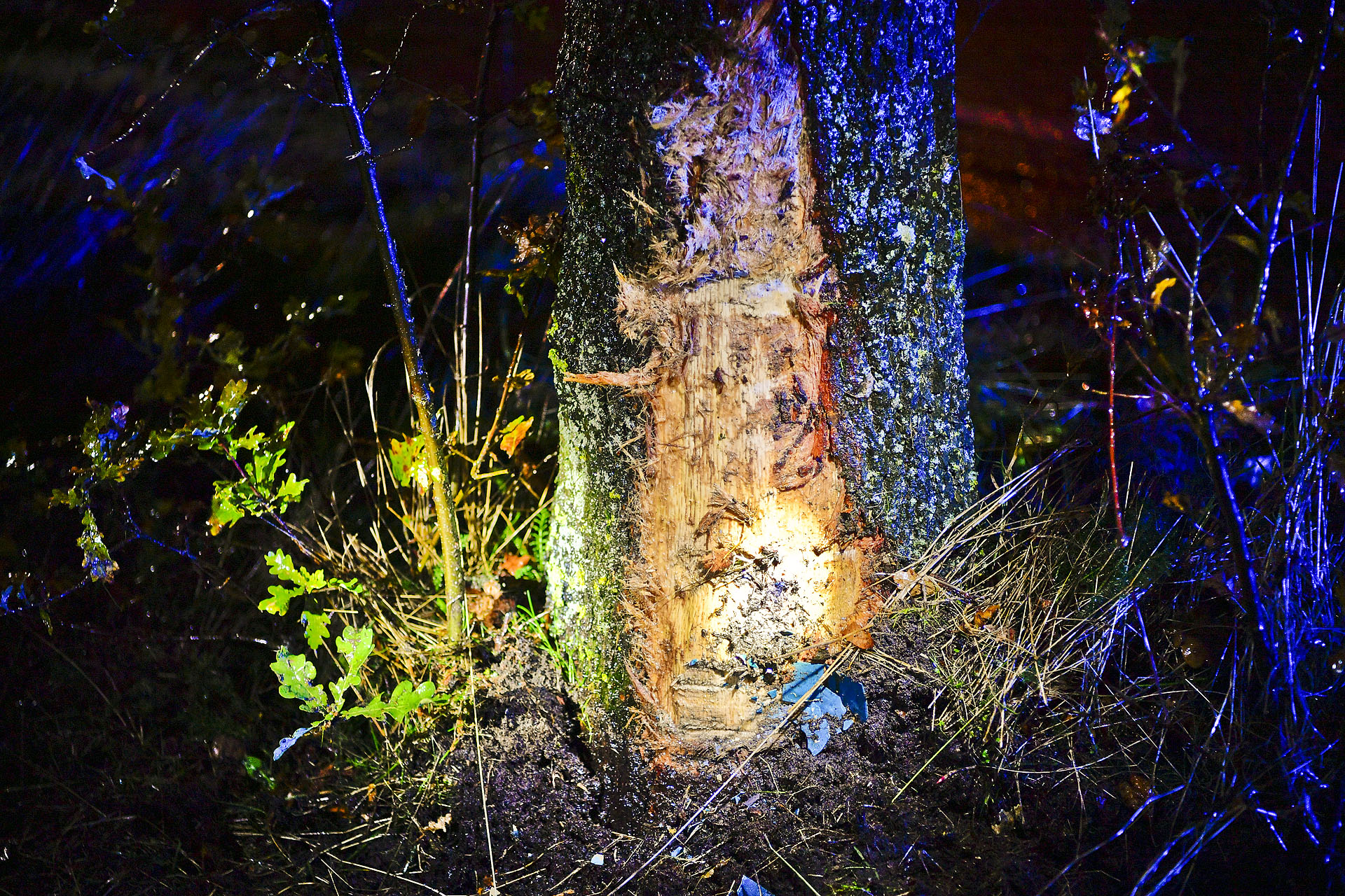 Het beschadigde voertuig wordt weggesleept, en de politie onderzoekt de toestand van de chauffeur ten tijde van het ongeval.