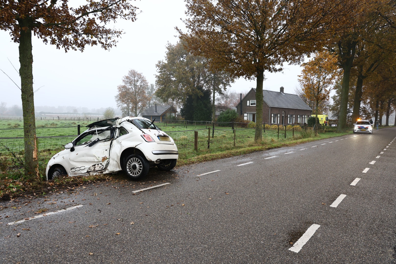 De vrouw verloor de controle over haar voertuig en kwam in botsing met een boom. Na het ongeval werd ze in een ambulance verzorgd en gecontroleerd op de ernst van haar verwondingen voordat ze naar een ziekenhuis werd overgebracht. De auto heeft aanzienlijke schade opgelopen en zal worden weggesleept door een bergingsbedrijf.