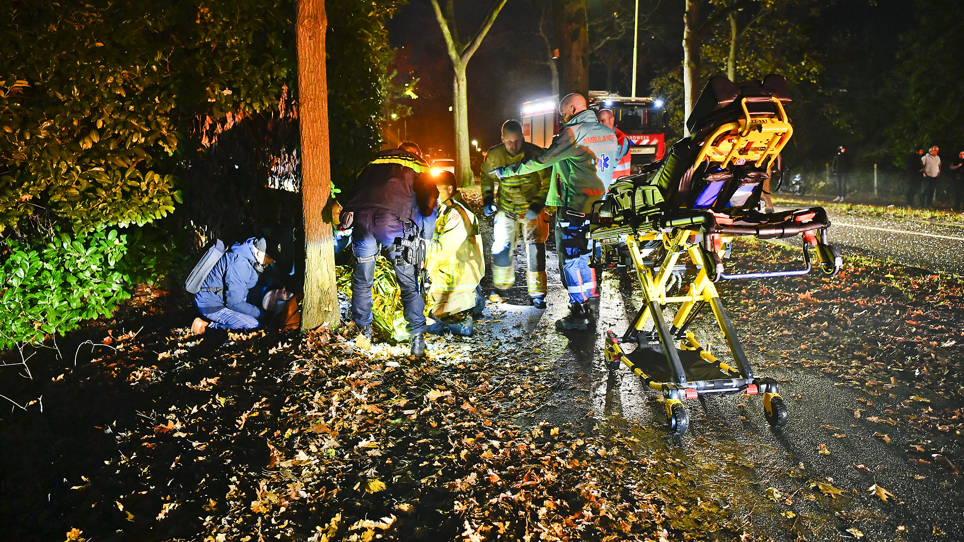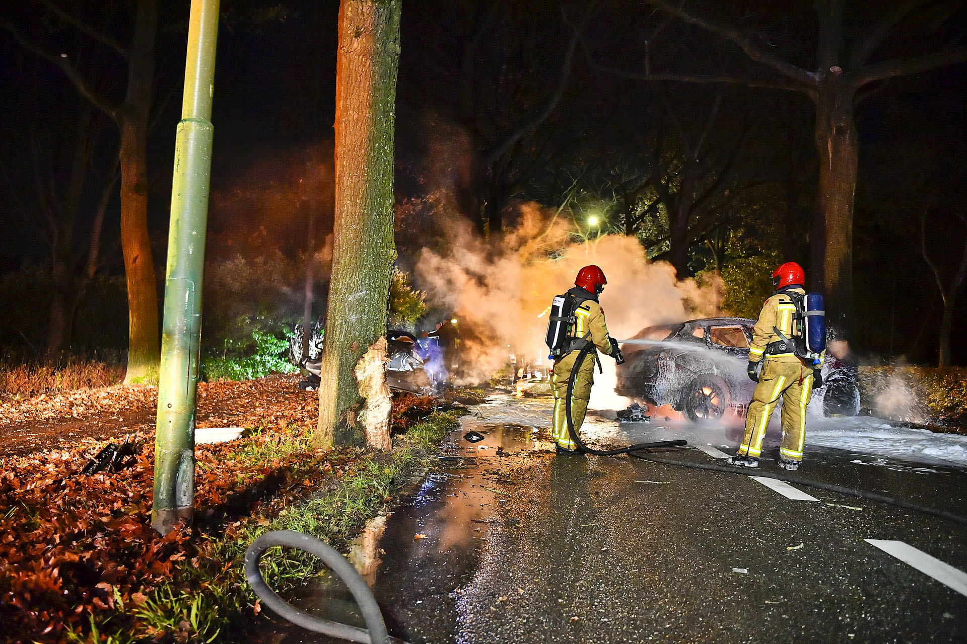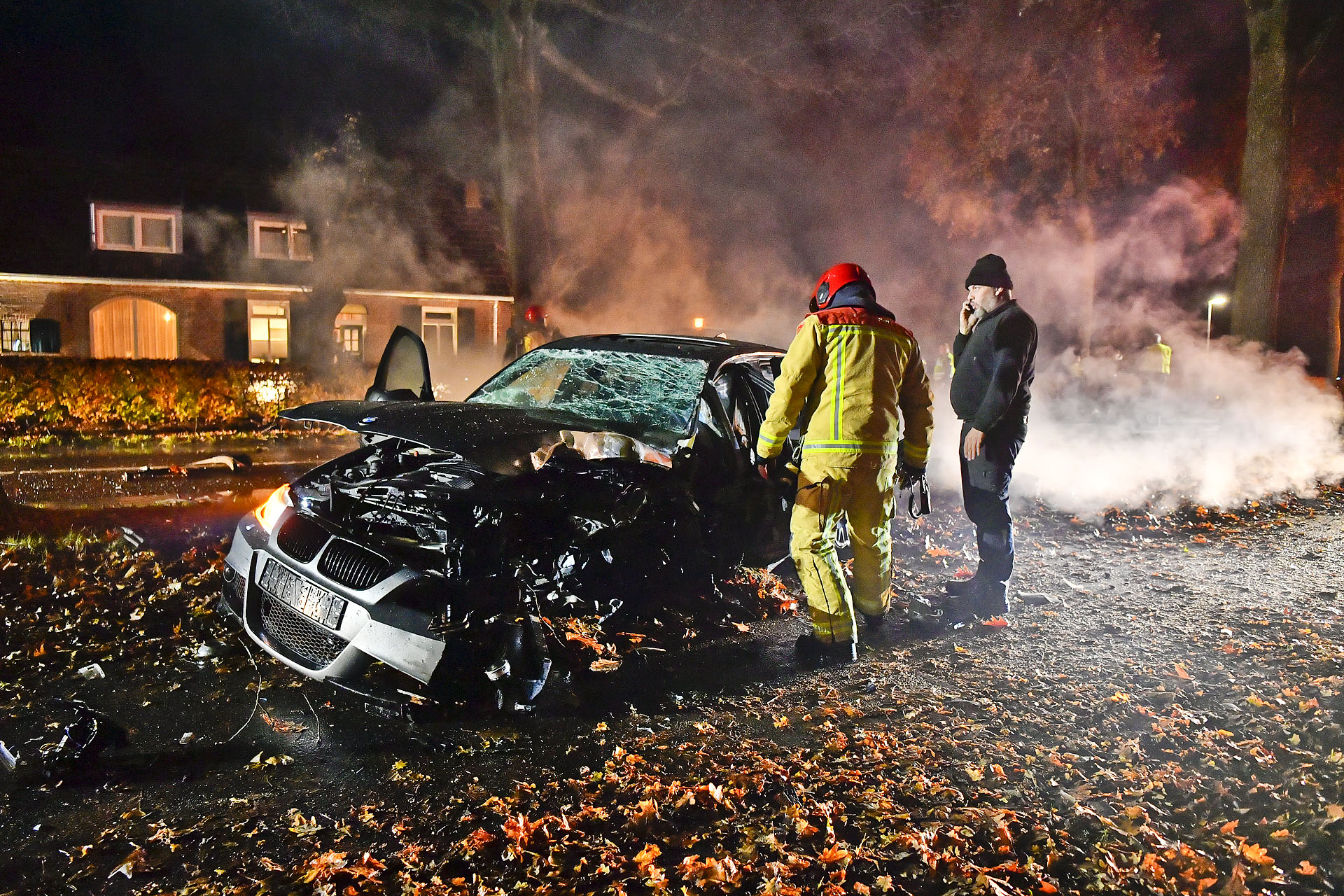 Grote ravage na ongeval, auto rijdt tegen boom en vliegt in brand