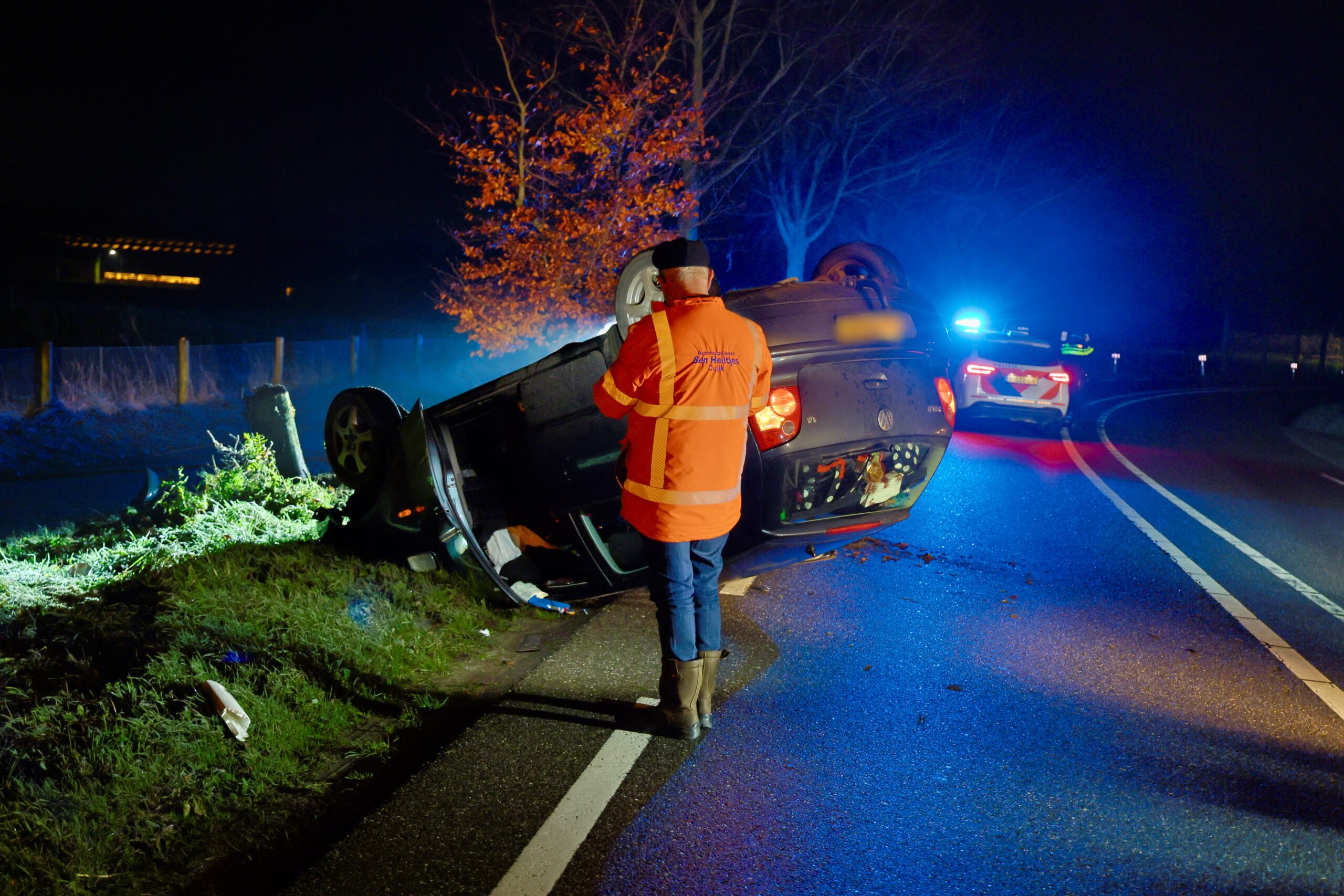 Geplaatst op 26 november 2023, om 08:22 uurOEFELT- In de nacht van zaterdag op zondag is een auto op z’n kop beland.
