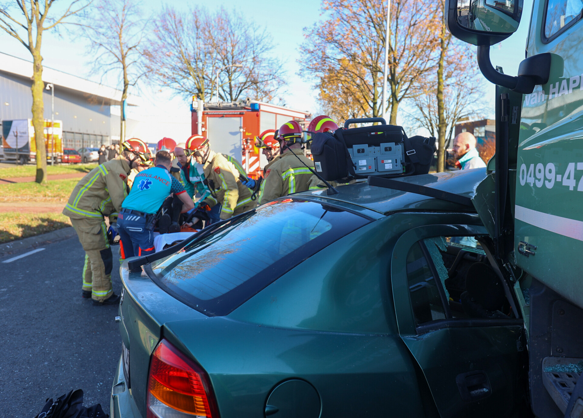 Vrachtwagen botst tegen auto, vrouw ernstig gewond