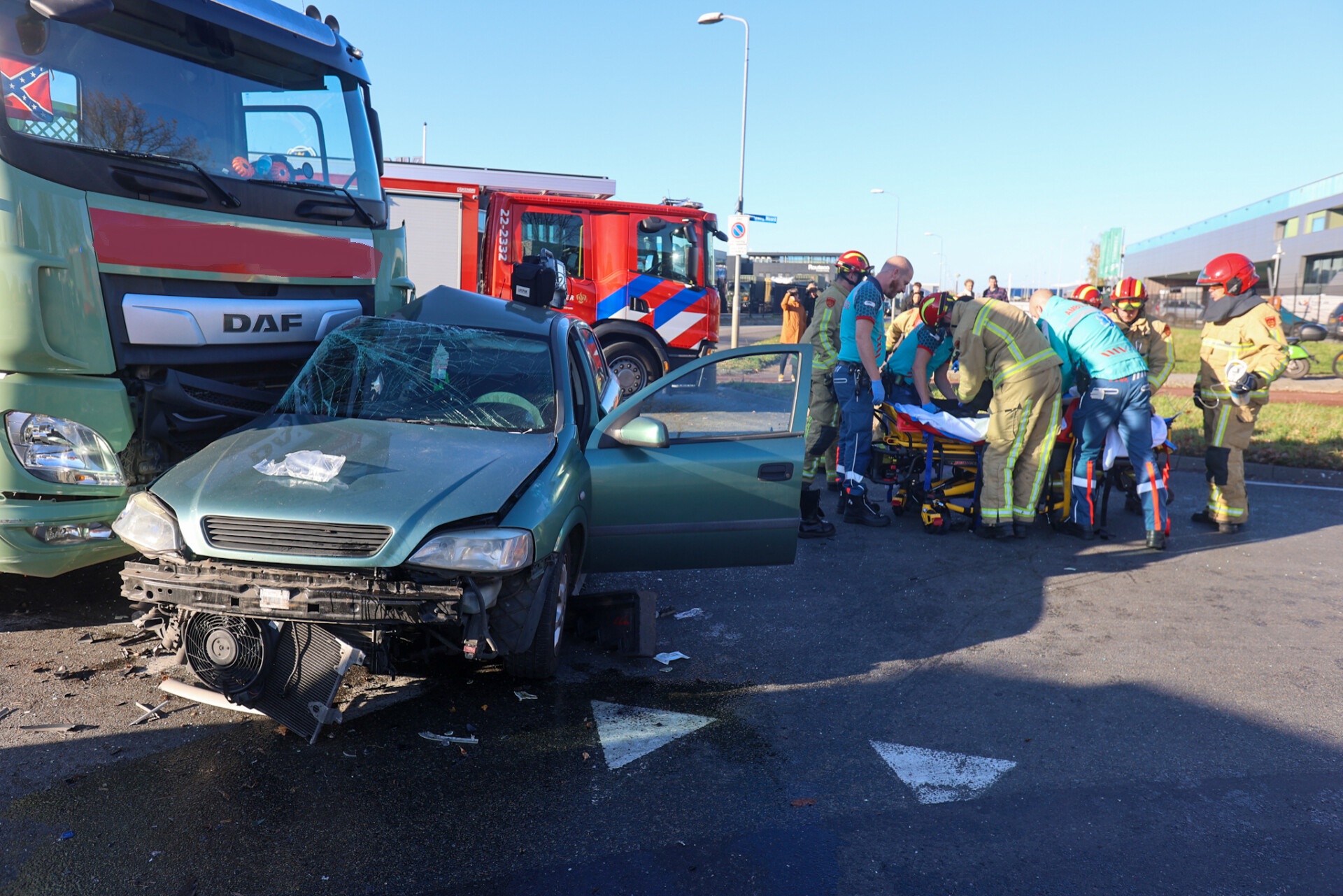Vrachtwagen botst tegen auto, vrouw ernstig gewond