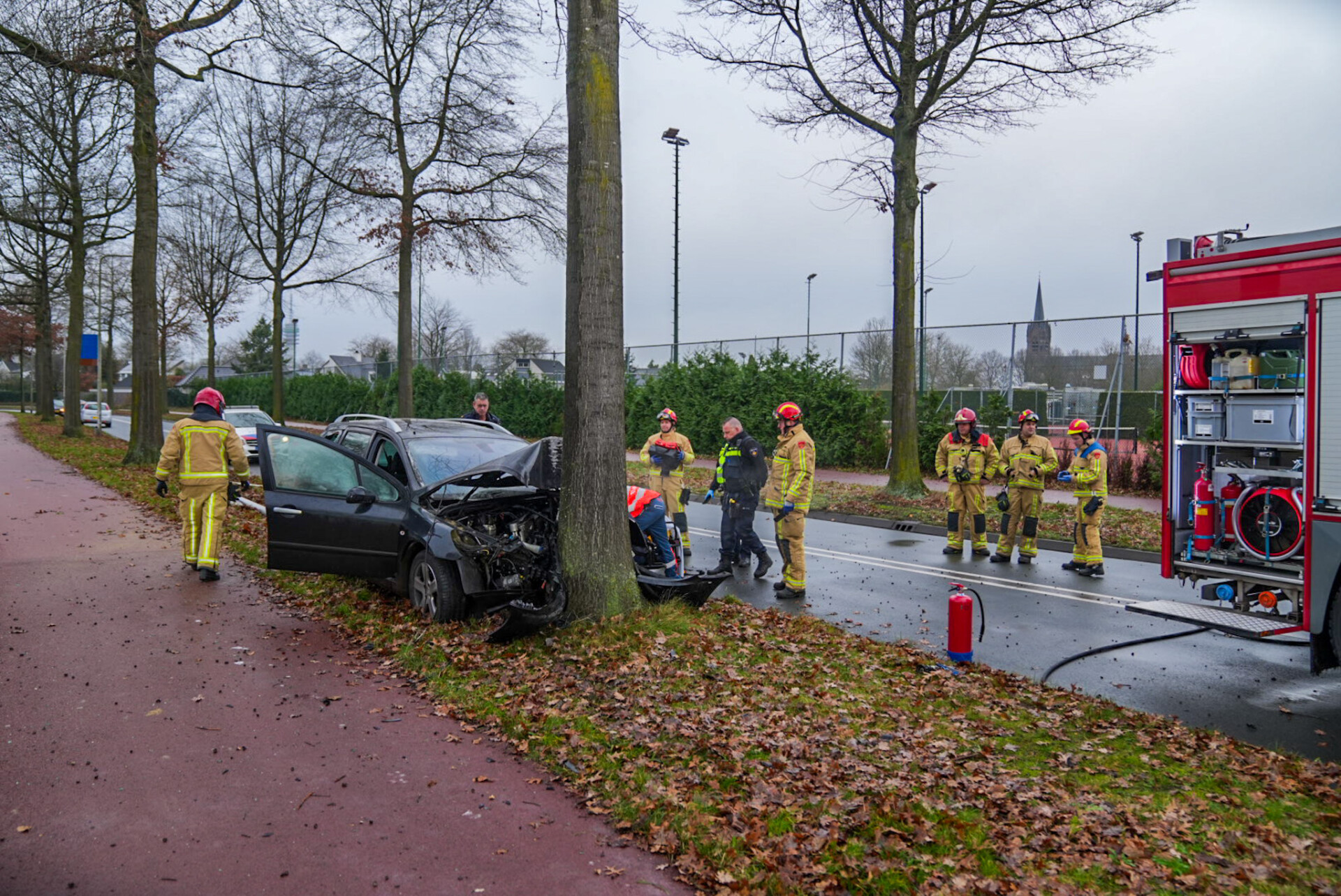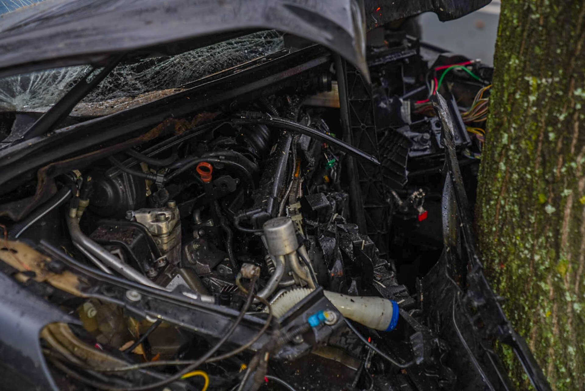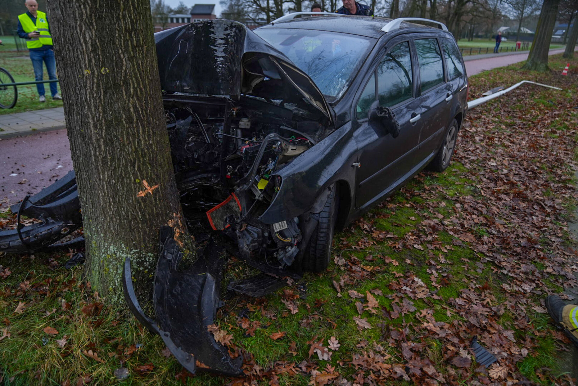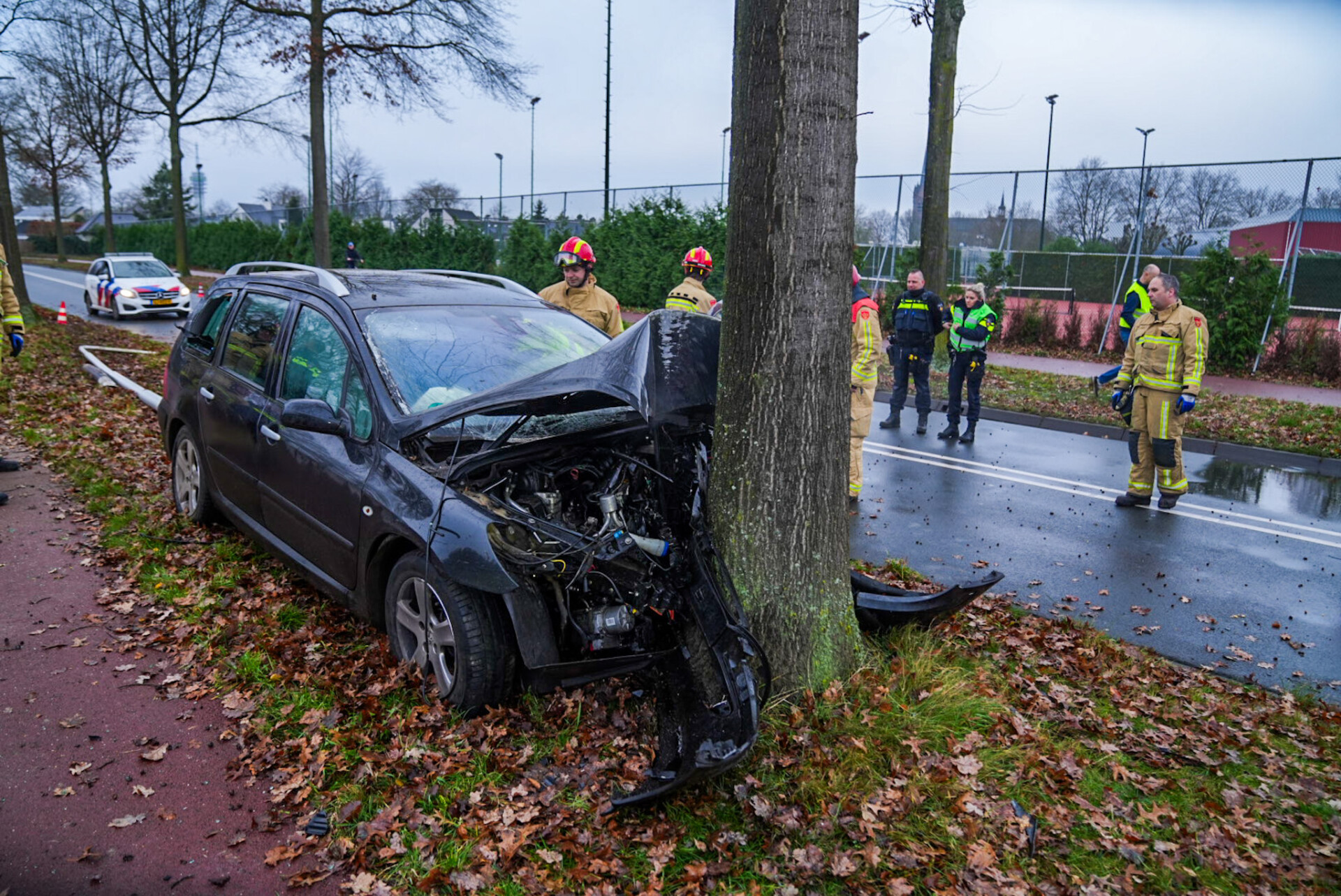 Tijdens het ongeval botste de bestuurder van de auto tegen een lichtmast en kwam uiteindelijk tot stilstand tegen een boom.