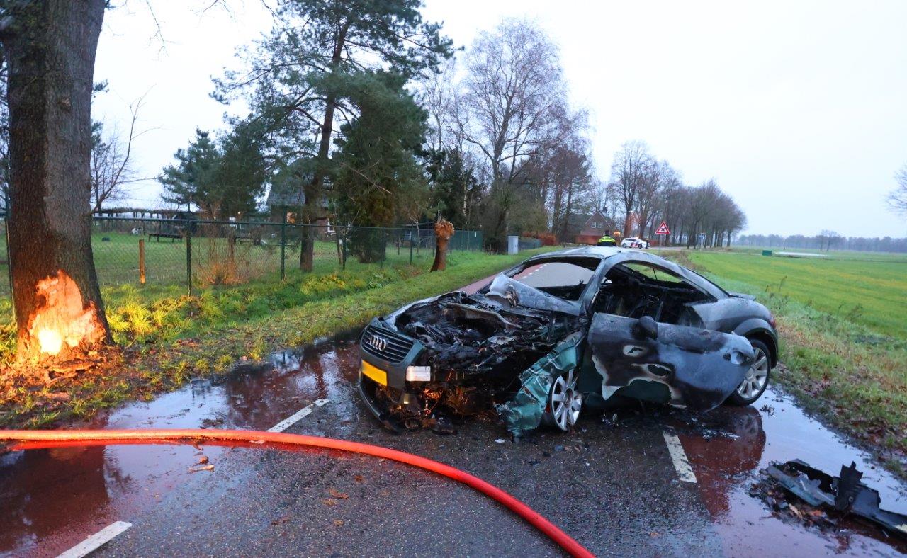 Passanten bevrijden bestuurster uit brandende auto na botsing tegen boom