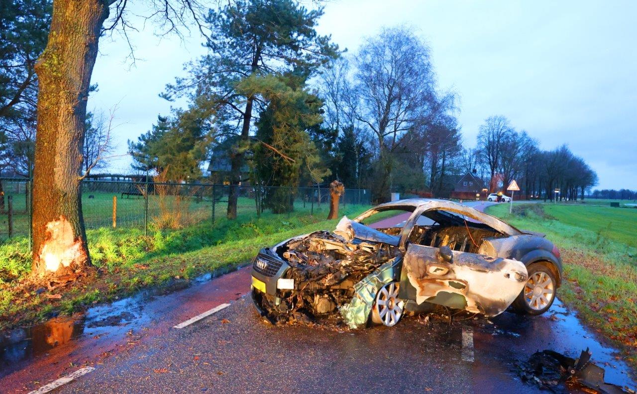 Passanten bevrijden bestuurster uit brandende auto na botsing tegen boom
