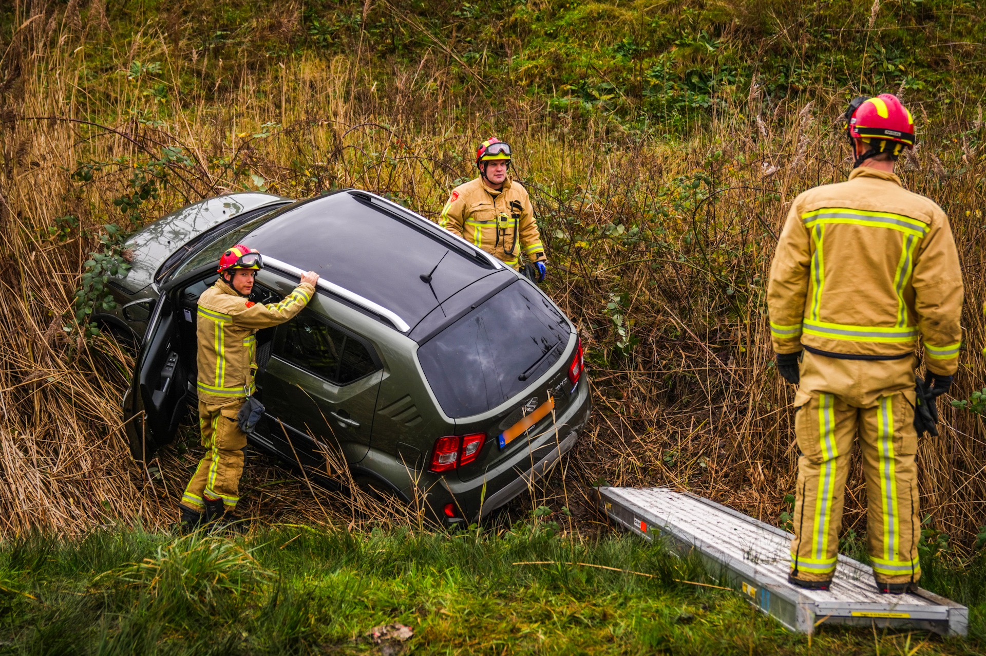 De bestuurder van de auto moest door de brandweer bevrijd worden, ook legde de brandweer loopplanken over de sloot om bij de auto te kunnen komen.