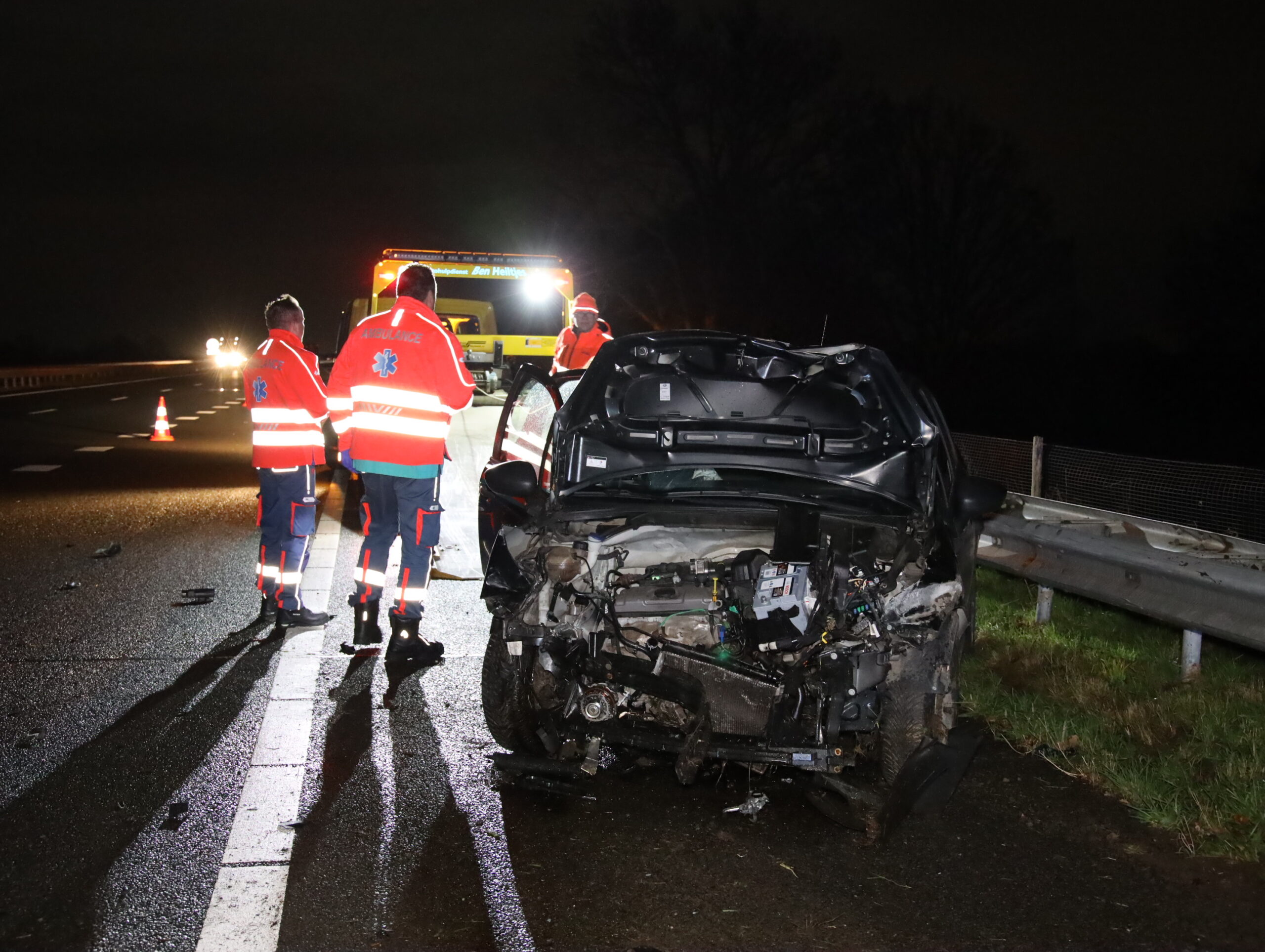 De voertuigen reden richting Limburg toen het net voor de viaduct mis ging. Omdat de auto begon te roken is de brandweer opgeroepen. De inzittenden konden op tijd de wagen verlaten. Ze zijn door een ambulance team naar gekeken. Het verkeer heeft hinder van het ongeval.