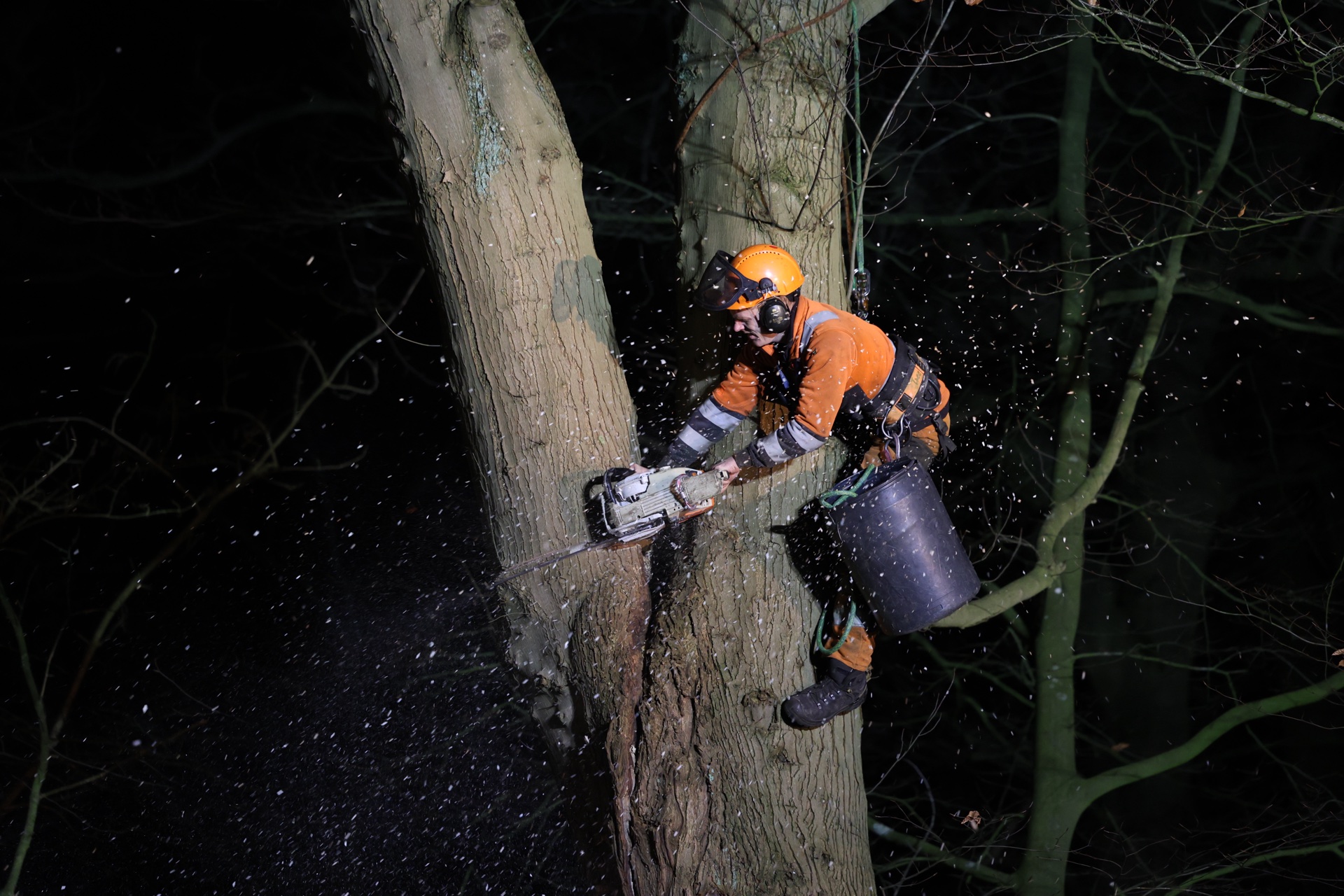 Rond 23.30 uur was de tak veilig aan de grond, echter moest deze toen nog in stukken gezaagd worden.