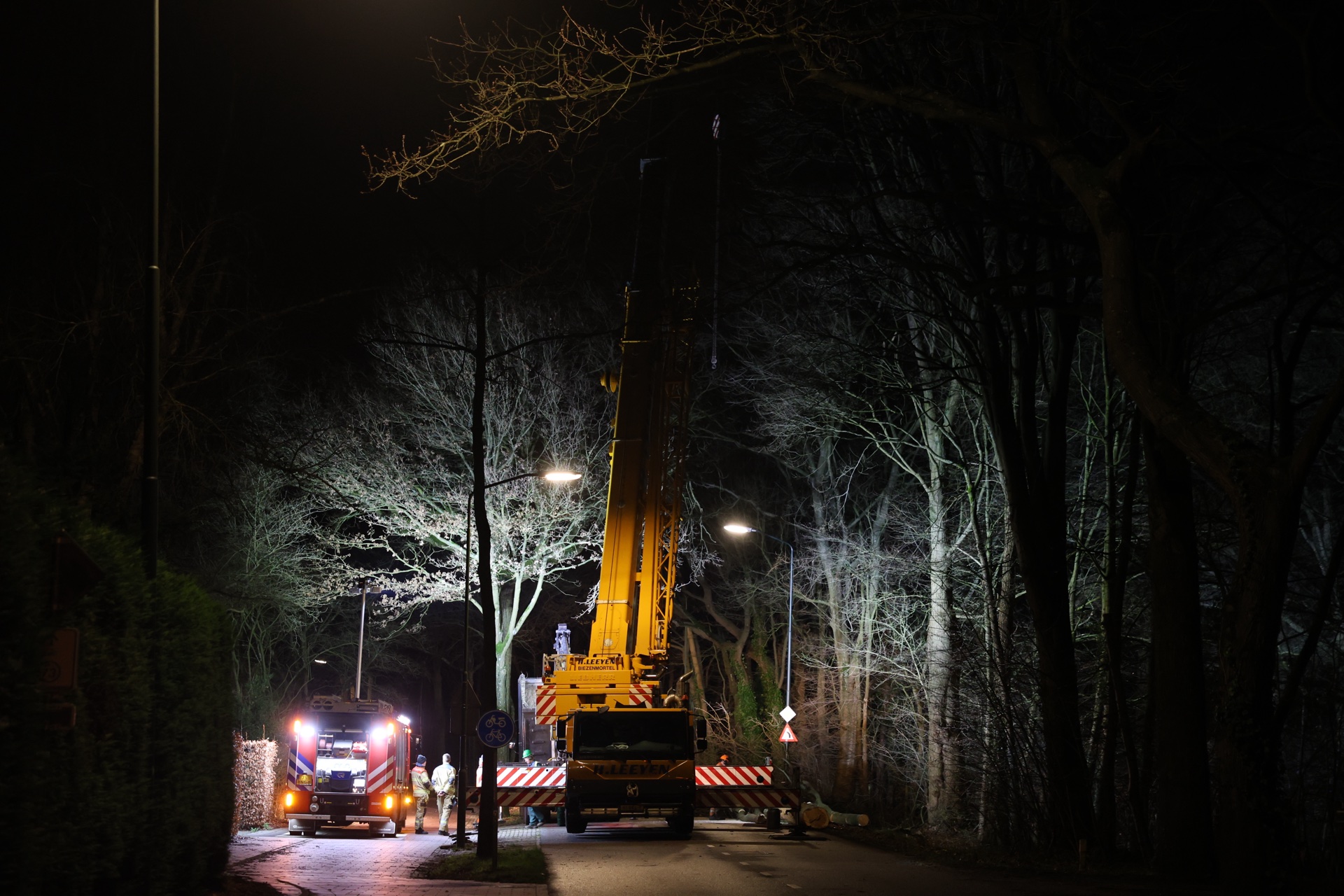 Boomklimmer en telescoopkraan ingezet bij stormschademelding