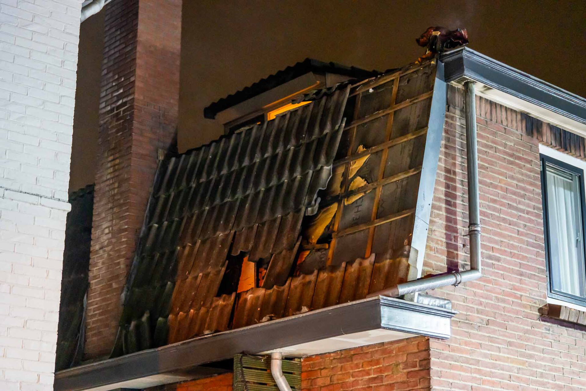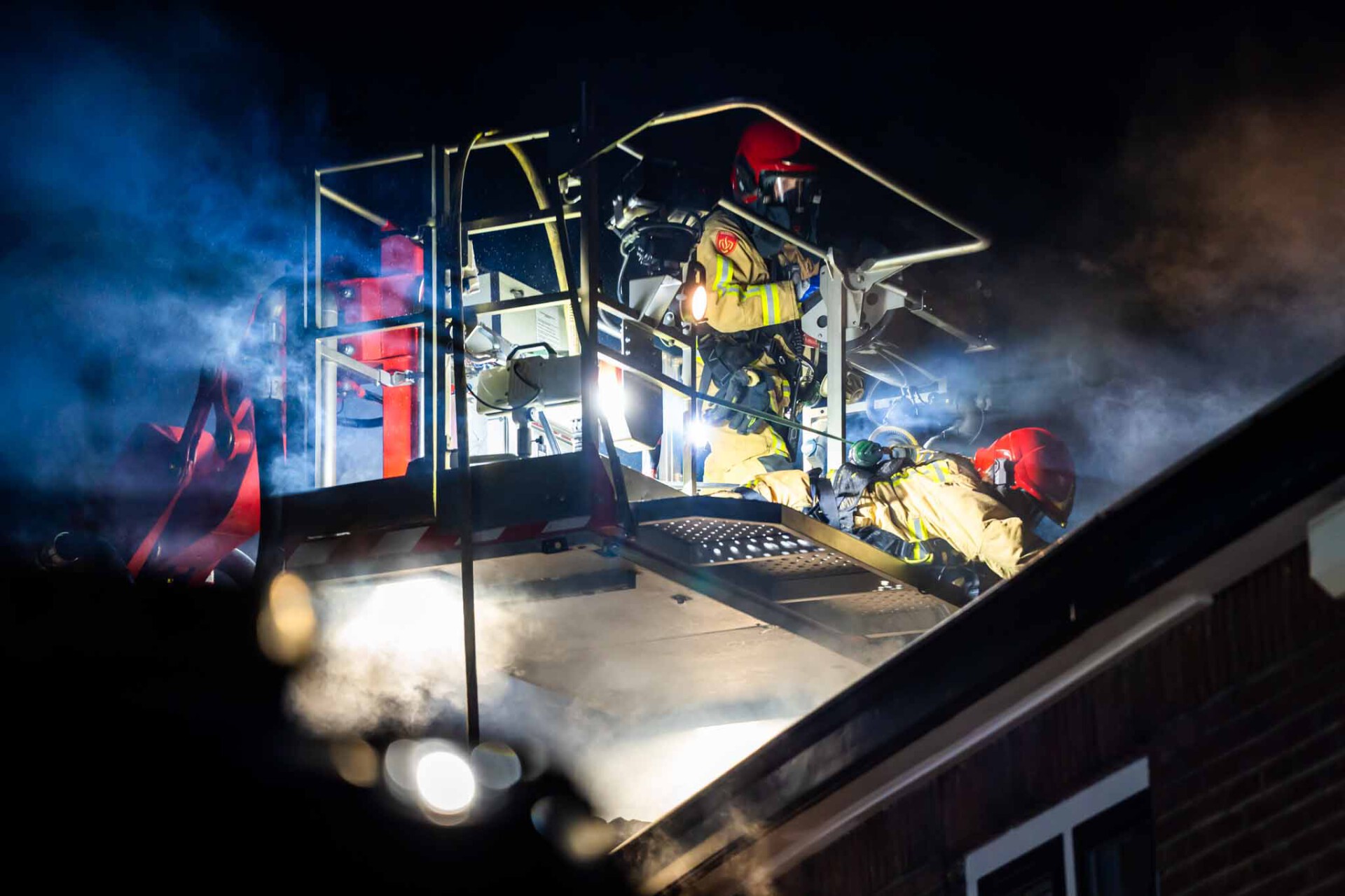 Om de brand effectief te kunnen bestrijden, zal een gedeelte van het dak afgebroken worden, zo meldt de brandweer.