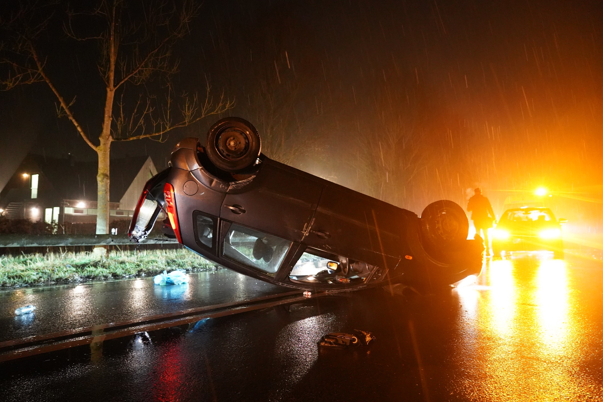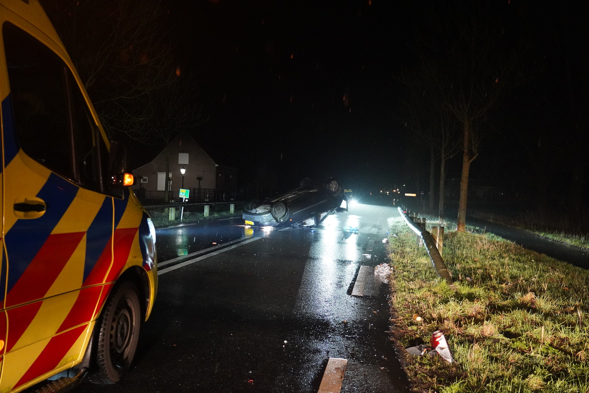 Tegen de politie vertelde de automobilist dat hij moest uitwijken voor een hert waarna het ongeval gebeurde. De politie sloot de weg af voor het verkeer.