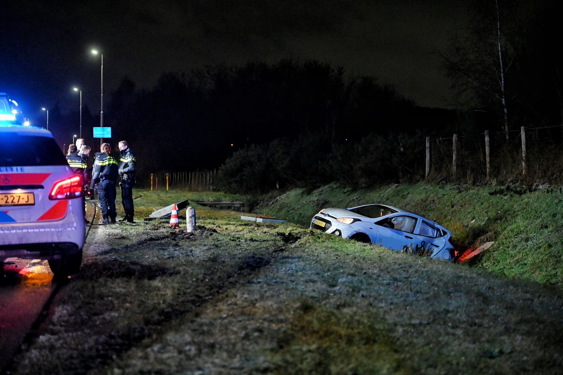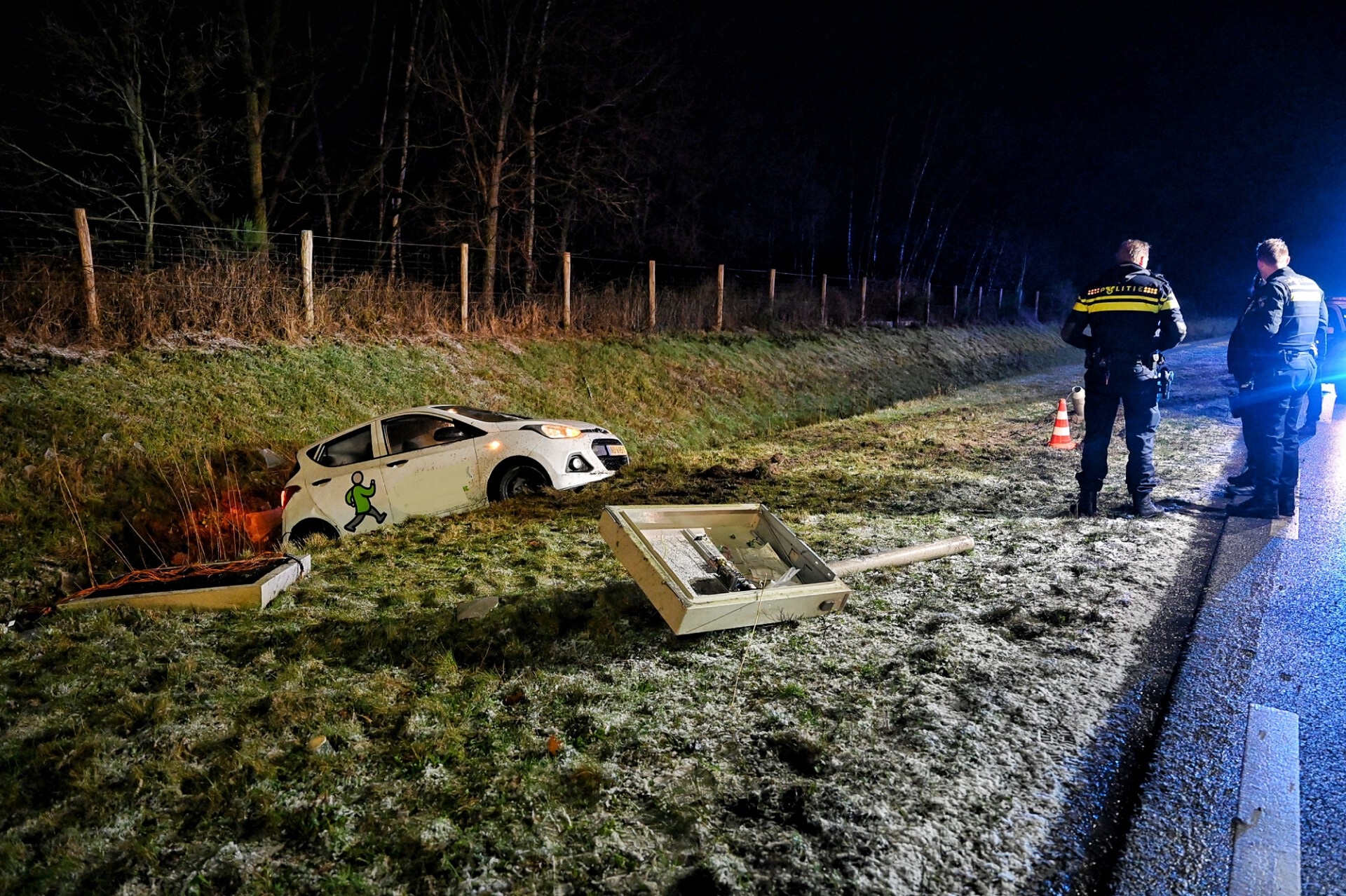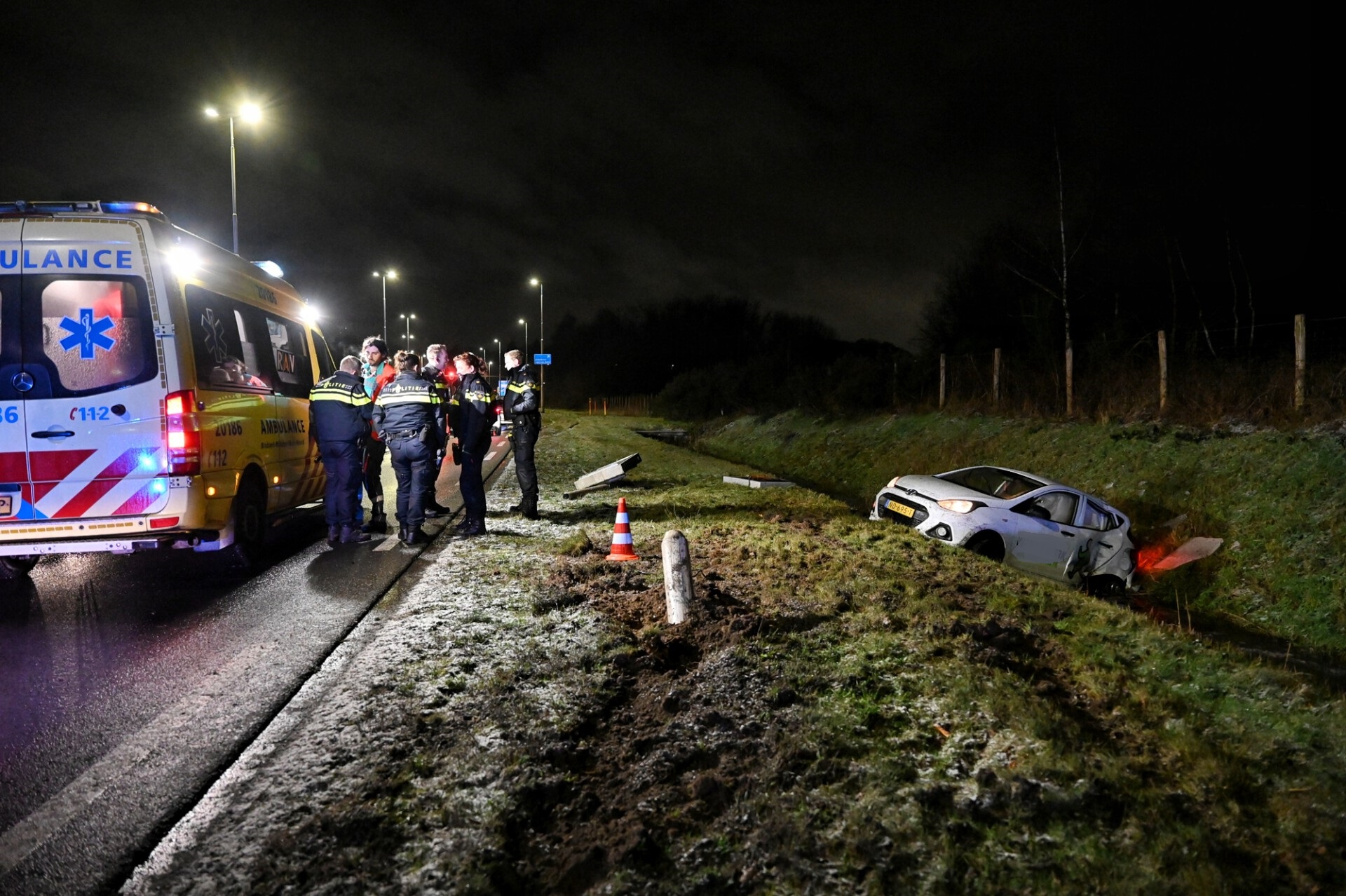 Door de hevige sneeuwval en winterweer raakte de auto vermoedelijk in de slip en kwam in de sloot terecht. Ook reed de bestuurder nog een verkeersbord uit de grond. Politie brandweer en ambulance kwamen ter plaatse. De brandweer heeft de man uit zijn auto gehaald. Hij is ter controle naar het ziekenhuis vervoerd.