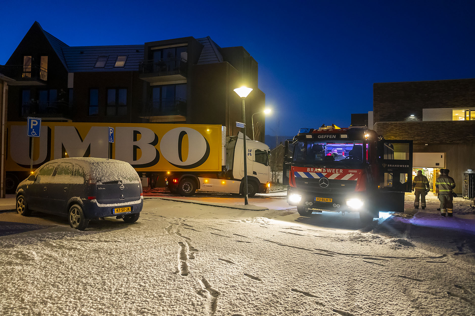 Geplaatst op 19 januari 2024, om 09:26 uurGEFFEN – Op vrijdagochtend kwam er een melding binnen over een mogelijke brand bij de Jumbo supermarkt aan het Aloysiusplein in Geffen.