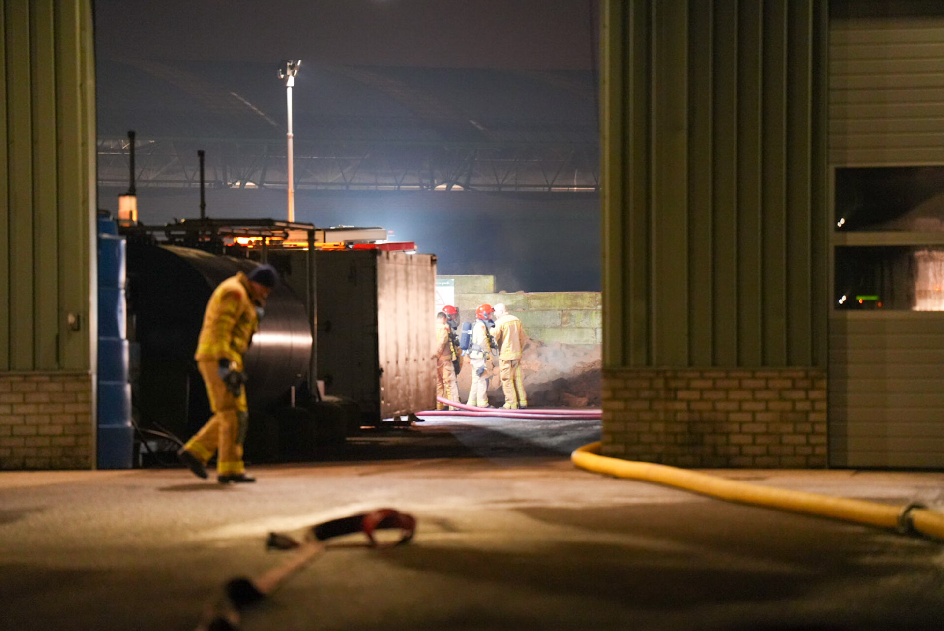 Het zou gaan om een broeibrand. De brandende stapel wordt met bulldozers uit elkaar gehaald en door de brandweer geblust. De brandweer is met meerdere voertuigen aanwezig met onder meer een hoogwerker en een grootwater transport voertuig om aan voldoende bluswater te komen.