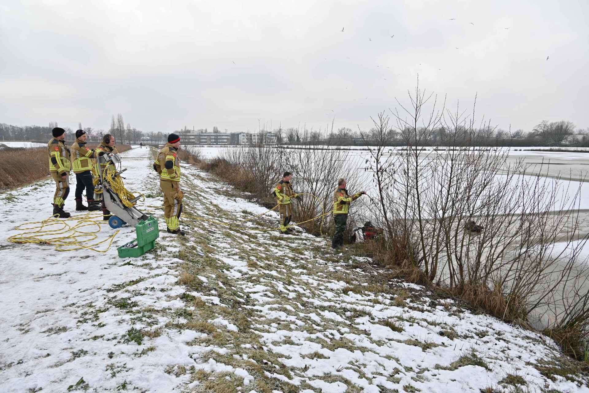 Geplaatst op 20 januari 2024, om 12:15 uurTETERINGEN – Bij het Oeverzwaluwpad in Teteringen raakte vanochtend om onbekende reden een hond in het water, waar deels een laag ijs op lag.