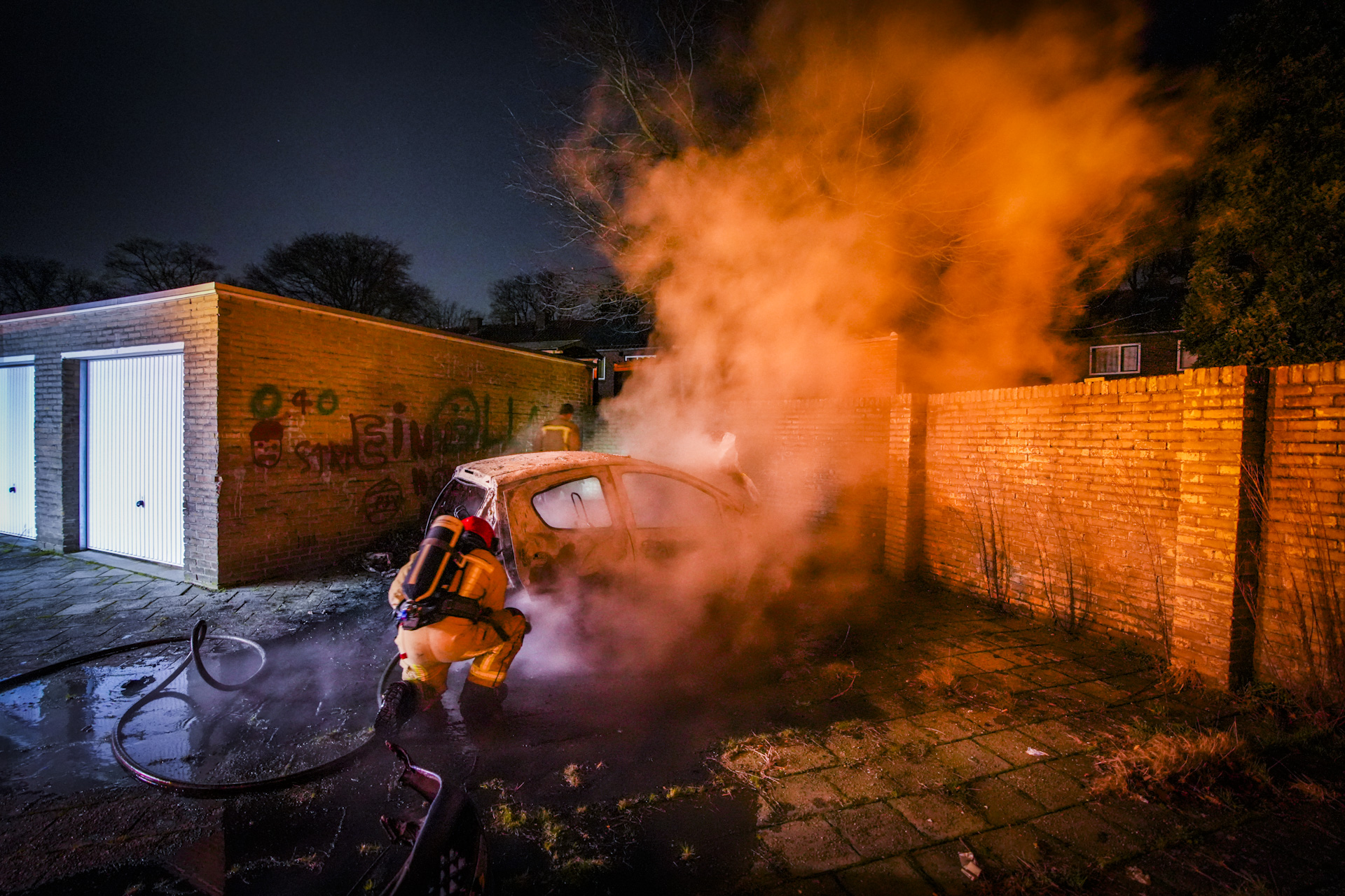 Bij aankomst van de brandweer was de auto al grotendeels verwoest. Dit is de derde auto die vanavond ten prooi is gevallen aan vlammen, en volgt op eerdere autobranden vorige week in het noordelijke deel van de stad.