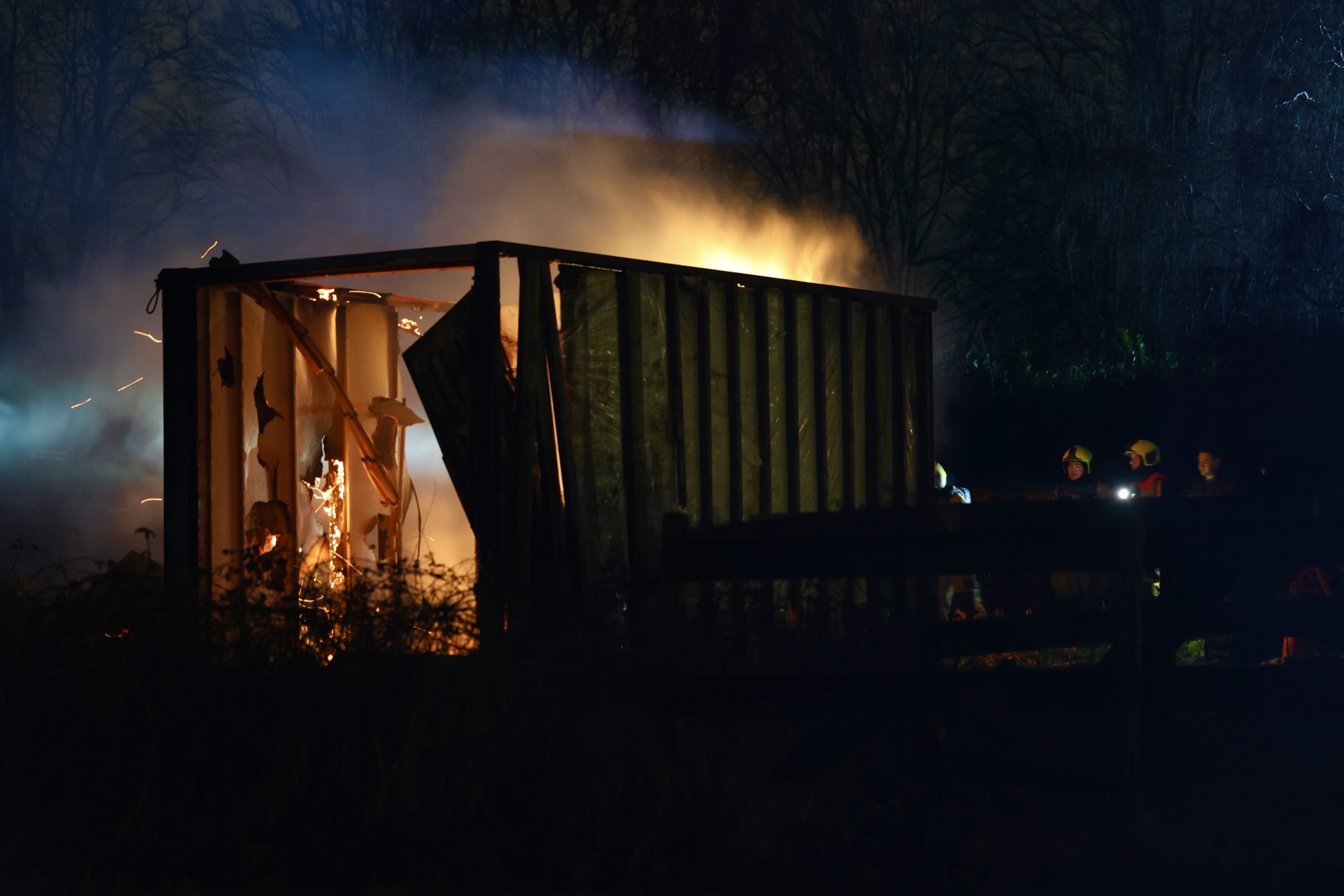 Toen de brandweer arriveerde, stond het gebouw al volledig in lichterlaaie en kon het niet meer gered worden. De brandweermannen focusten zich op het beschermen van naastgelegen hooibalen. Ondanks dat een waterwagen gealarmeerd was, is deze niet op de locatie aangekomen. De politie was wel aanwezig met twee eenheden, maar kon weinig uitrichten.