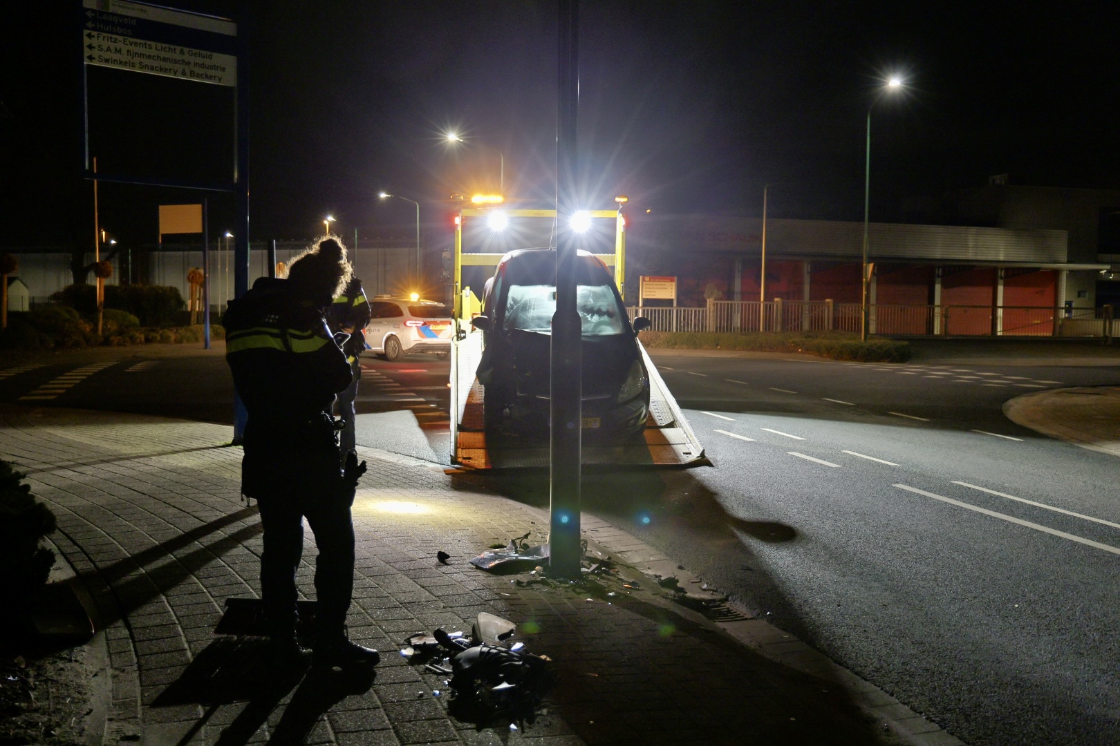 Een automobiliste is om onbekende reden tegen een lantaarnpaal op de kruising met het Laagveld gebotst. Een ambulanceteam onderzocht de automobiliste, maar zij hoefde niet naar het ziekenhuis te worden vervoerd. Het bergingsbedrijf zal de auto wegslepen.