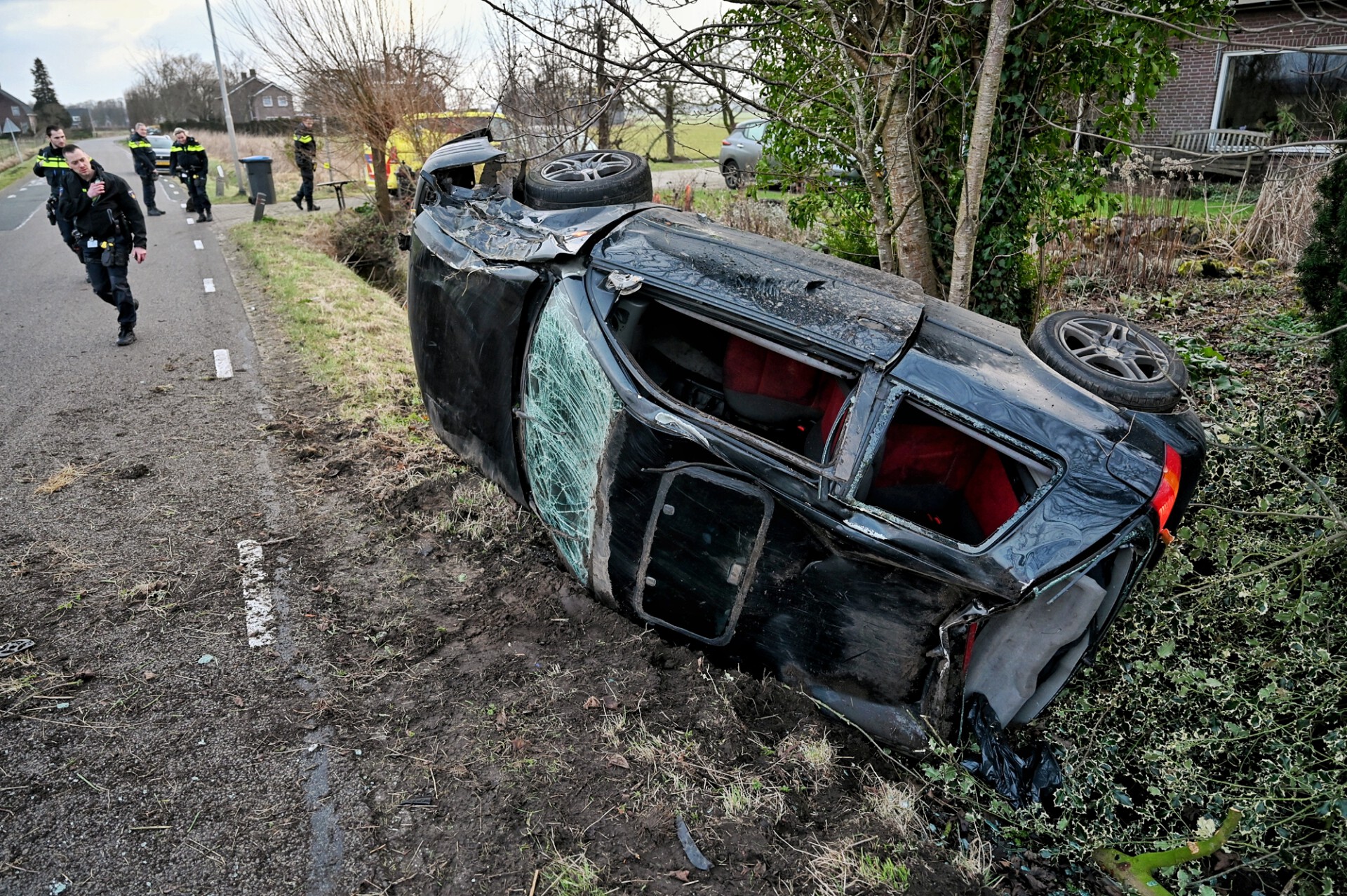 Auto meerdere keren over de kop geslagen: bestuurder aangehouden