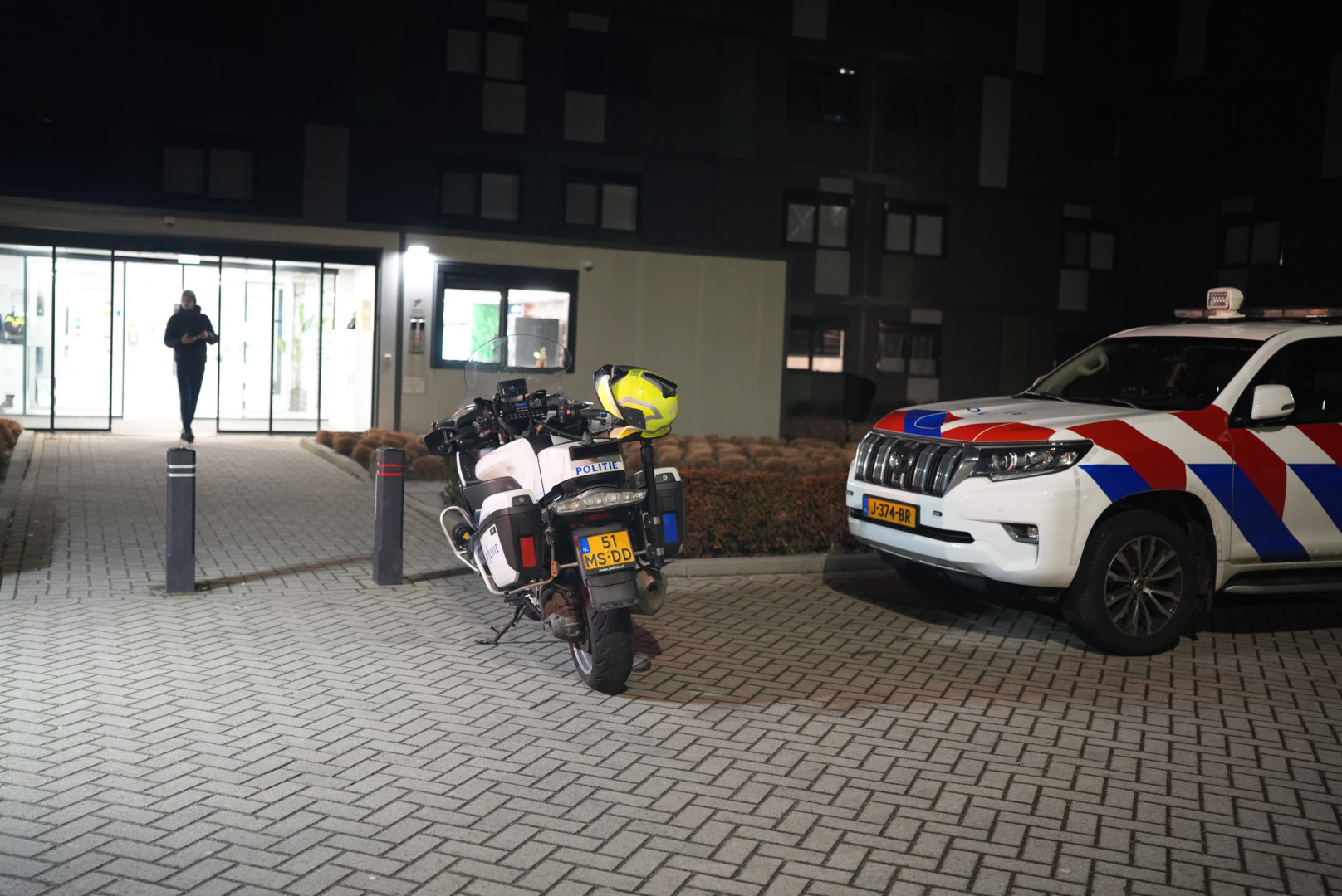 Het slachtoffer is per ambulance naar het ziekenhuis vervoerd. De verdachte werd door de politie in hetzelfde gebouw gearresteerd en in handboeien afgevoerd naar het politiebureau. Ter plaatse heeft de politie onderzoek verricht.